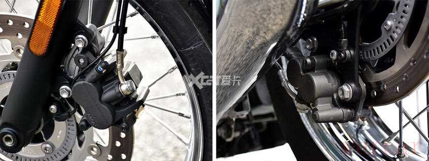 Bonneville T100采用前单盘搭配单向双活塞卡钳设计,310mm半浮动盘也最大限度的满足了刹车需要;后刹车同样为单盘搭配单向双活塞卡钳设计,硬件均由日信提供,整车标配ABS系统。