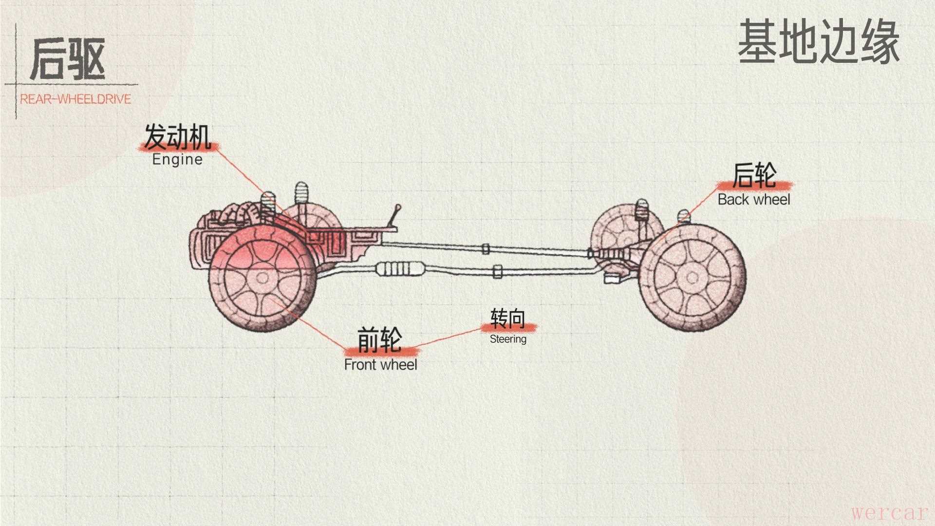 后驱车就出现了,发动机的动力通过传动轴传递给后轮,后轮推着前轮走,而前轮只负责转向。这样减轻了前轮的“工作量”、车头的重量,不会再出现转向不足的现象。