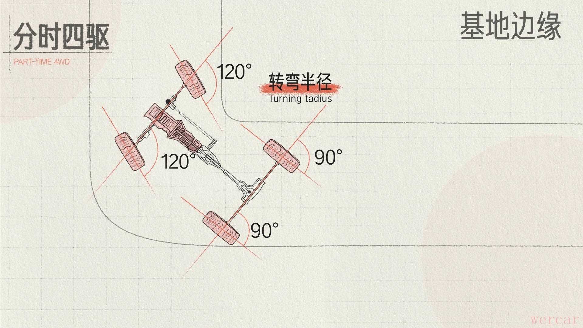 同时它的缺点也很明显,分时四驱没办法平衡前后的轮速差。尤其是在转弯的时候,前轮转弯半径比同侧的后轮要大,这就导致前轮的转速要比后轮快。所以分时四驱的车在四驱系统下,只能走直线。除非是在雪地啊、泥巴地这样的路况下,靠打滑吸收转速差。