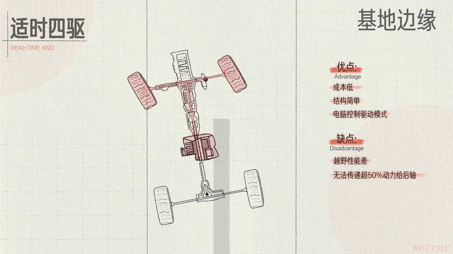 但话说回来,要解决分时四驱这个问题也很简单。装上中央差速器调节轮速差,变成全时四驱就行。顾名思义,全时四驱就是车子每时每刻都处于四驱状态。