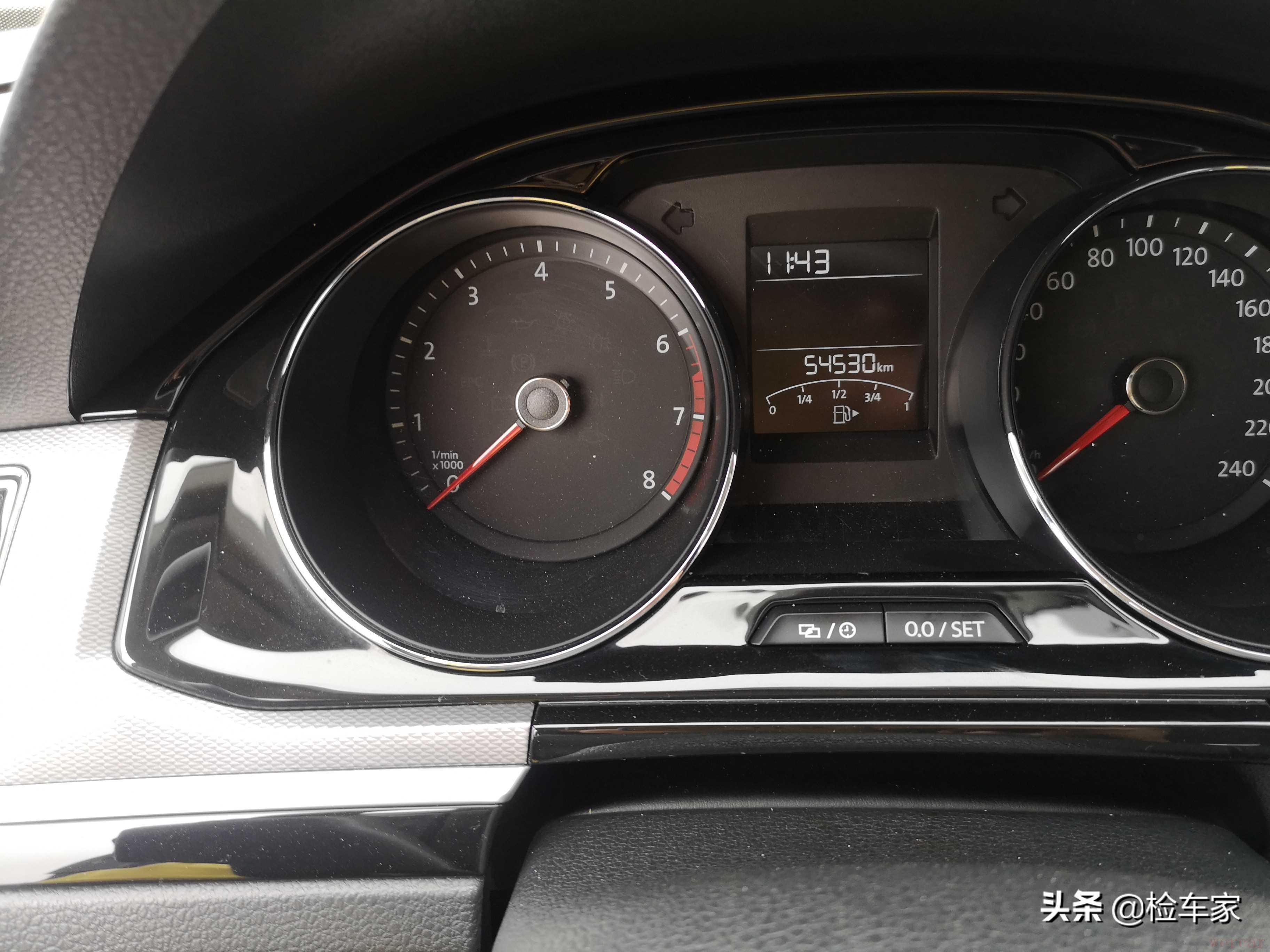 我们先看下车辆的表显公里数,上面显示的公里数是5万多公里,懂二手车的朋友都知道,这个公里数不算太大,对于大众车型来说更是当打之年,所以外观部分没多少喷漆也是正常情况,具体是不是这个公里数,等下我们电脑读取一下。