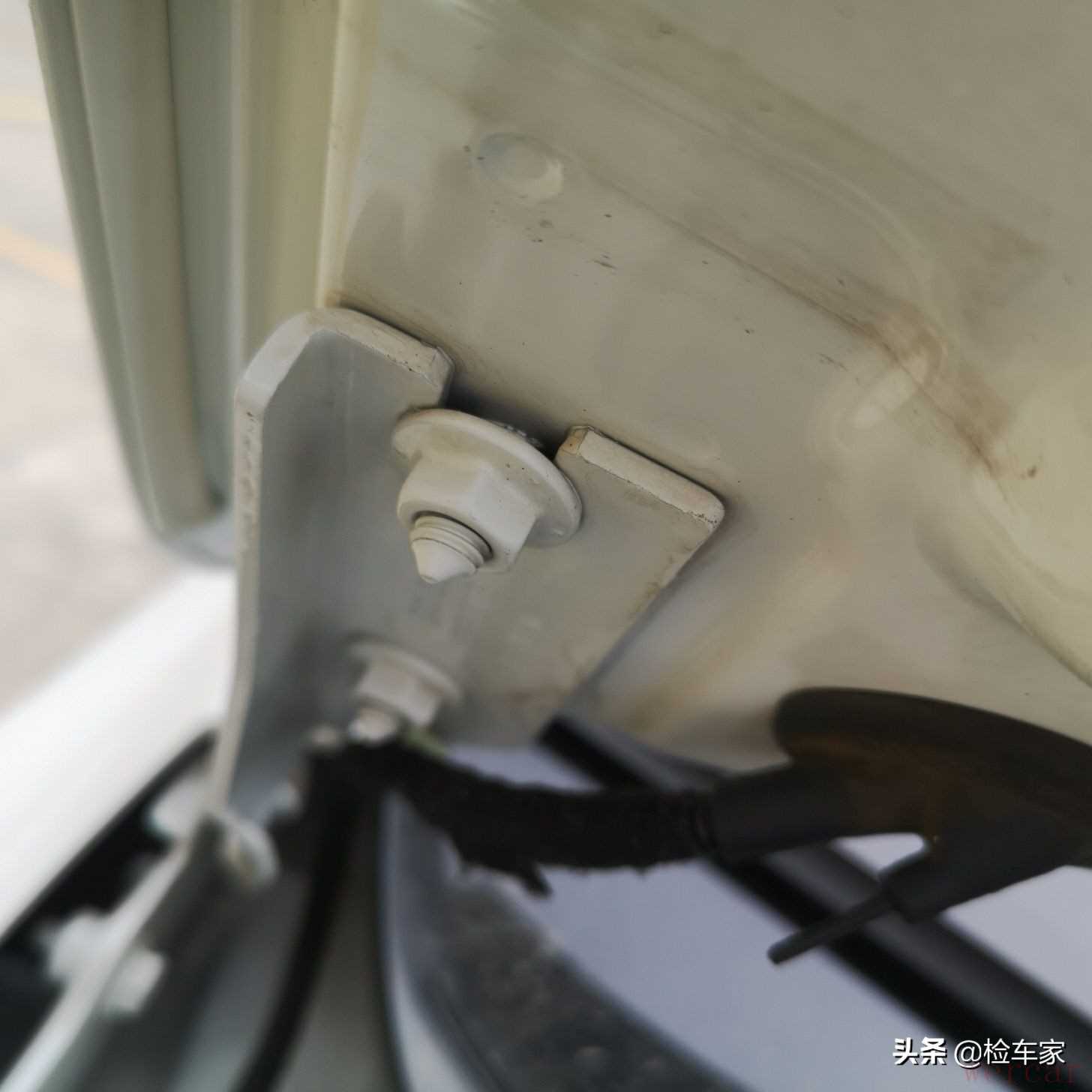 发动机舱部分肯定要看结构件是否有损伤,有问题的话,发动机再好也没用不是么,这里看到前盖的螺钉并未发现有拆卸的痕迹,刚前盖部分也未发现有钣金修复的痕迹,这样判断前盖也是没有更换修复过。