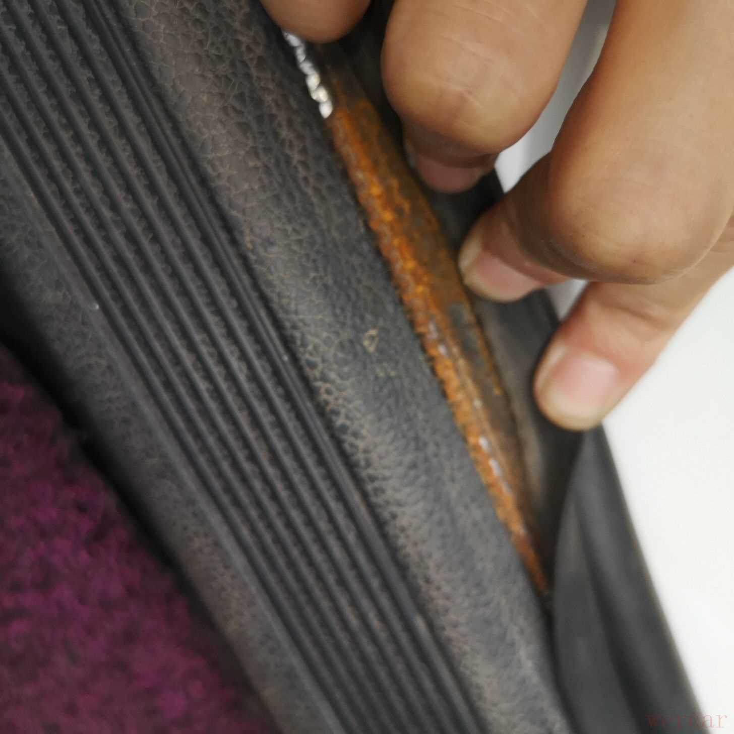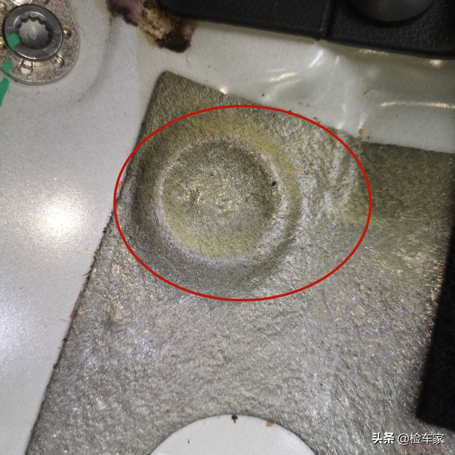 悄悄扒开车辆的门边胶条部分,我了个去!发现了很明显的泥沙及锈蚀的痕迹,虽然大部分涉水至门槛的车辆也会有这样的情况,但至少说明车辆内部肯定有水漫进来过。