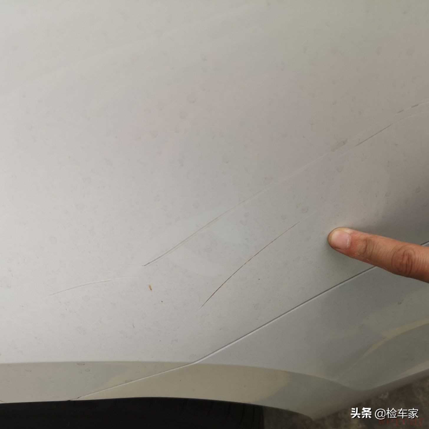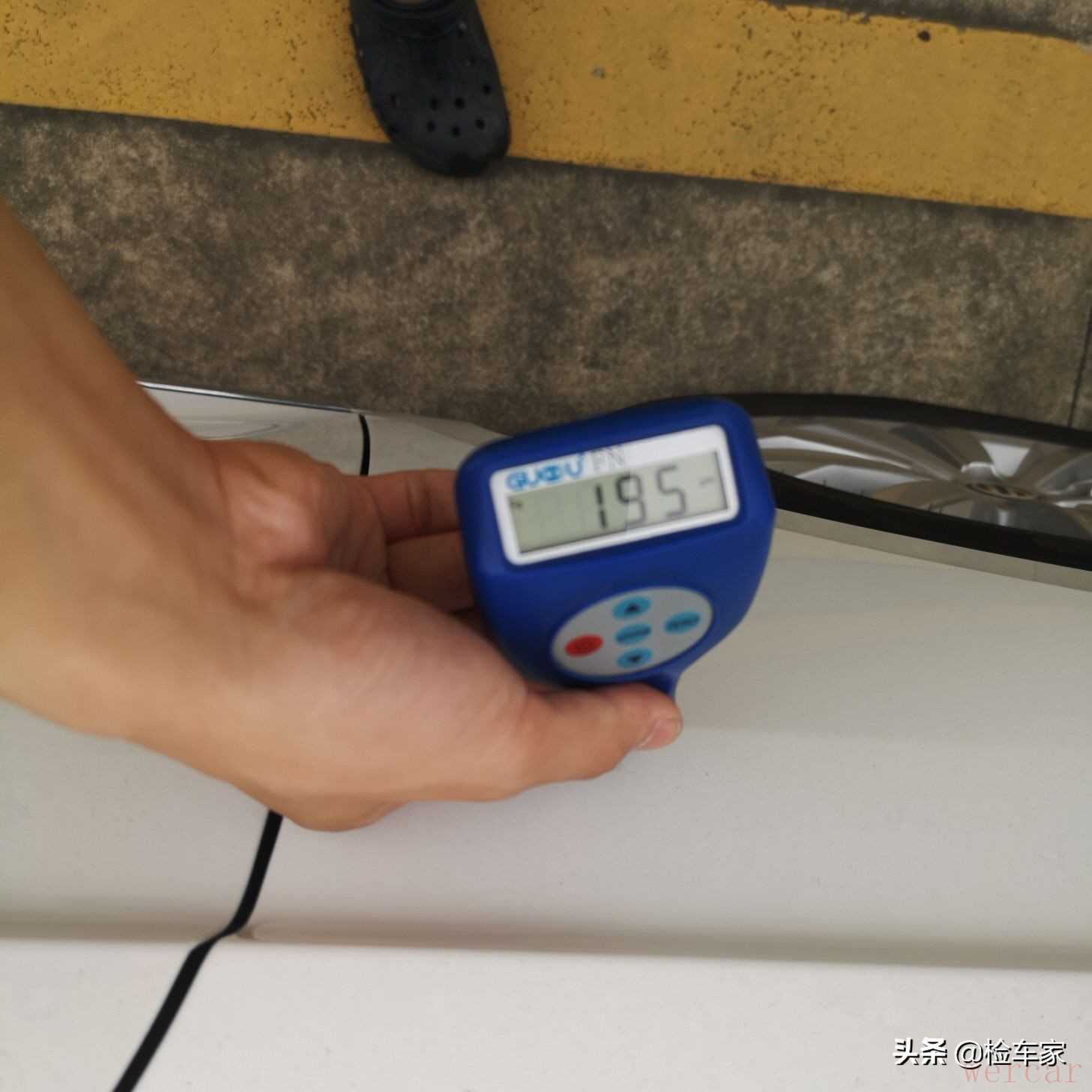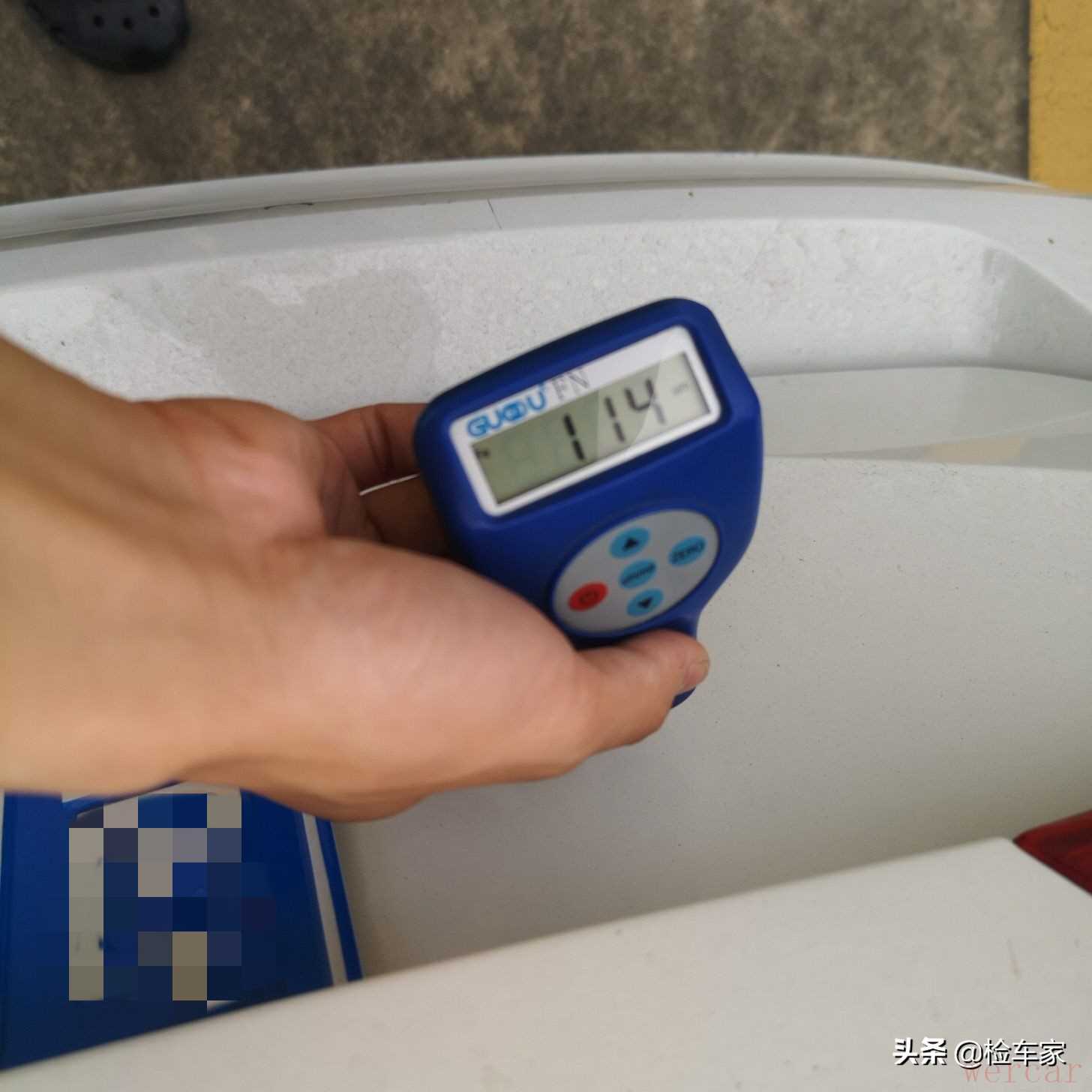 后杠部分的检测,并未发现有喷漆修复的情况,上面也只是存在轻微剐蹭导致的划痕。车辆左侧一系列的检测结果还是比较不错的,让一旁的粉丝小哥都精神起来了。