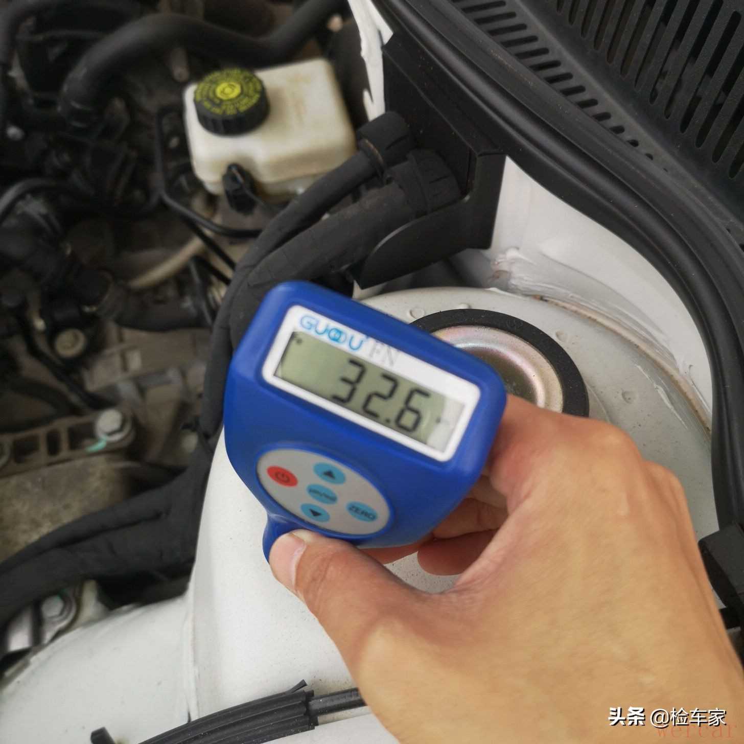 前盖部分检测,也并未发现有明显的后期修复痕迹,看来前面前杠部分有也不是啥大的事故导致喷漆的,不过具体情况我们还是要结合发动机舱部分检测。