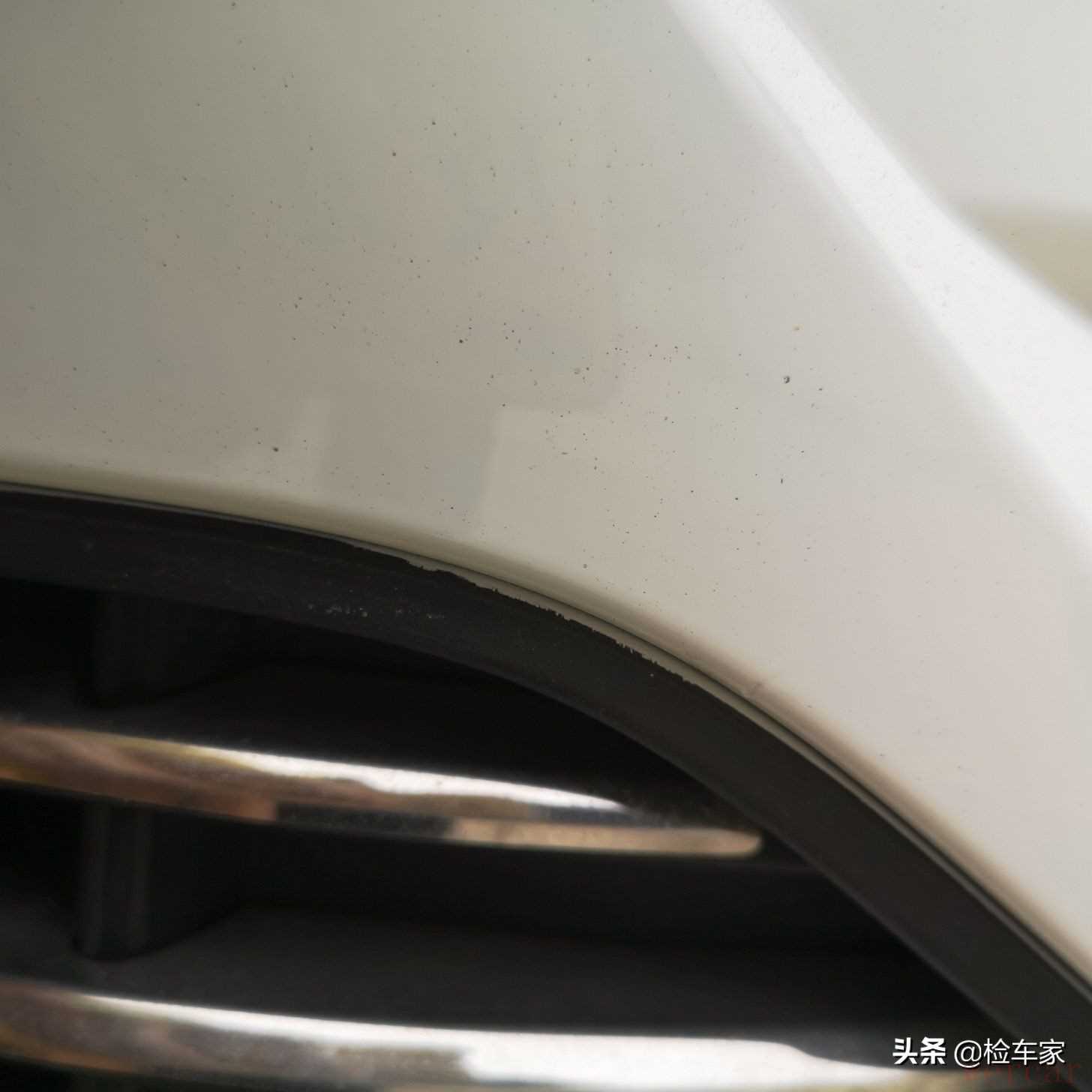 那就话不多说,我们先来看一下车辆的外观部分,首先前杠部分,我们这里可以看到有明显的后期修复痕迹。上面也有飞漆的现象,二手车难免擦擦碰碰也不算什么大问题,看个人接受程度啦。