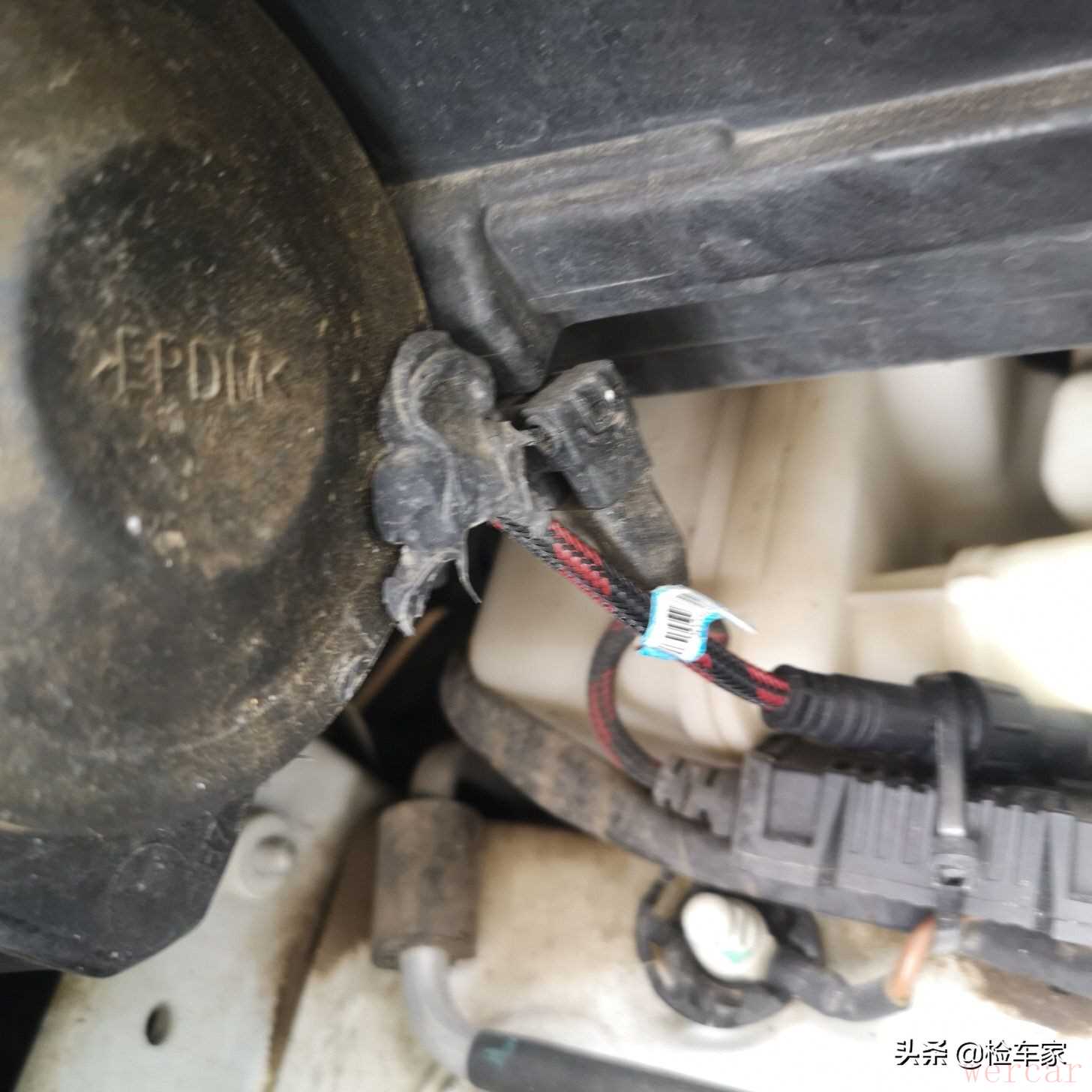 大灯部分的检测,发现了这个大灯有改装的情况,虽然改装了氙气大灯,但可能是前车主预算有限并没有上透镜,没有透镜的氙气大灯晚上一开,啧啧,前车不要太酸爽,相信经常晚上开车的朋友是深有体会。