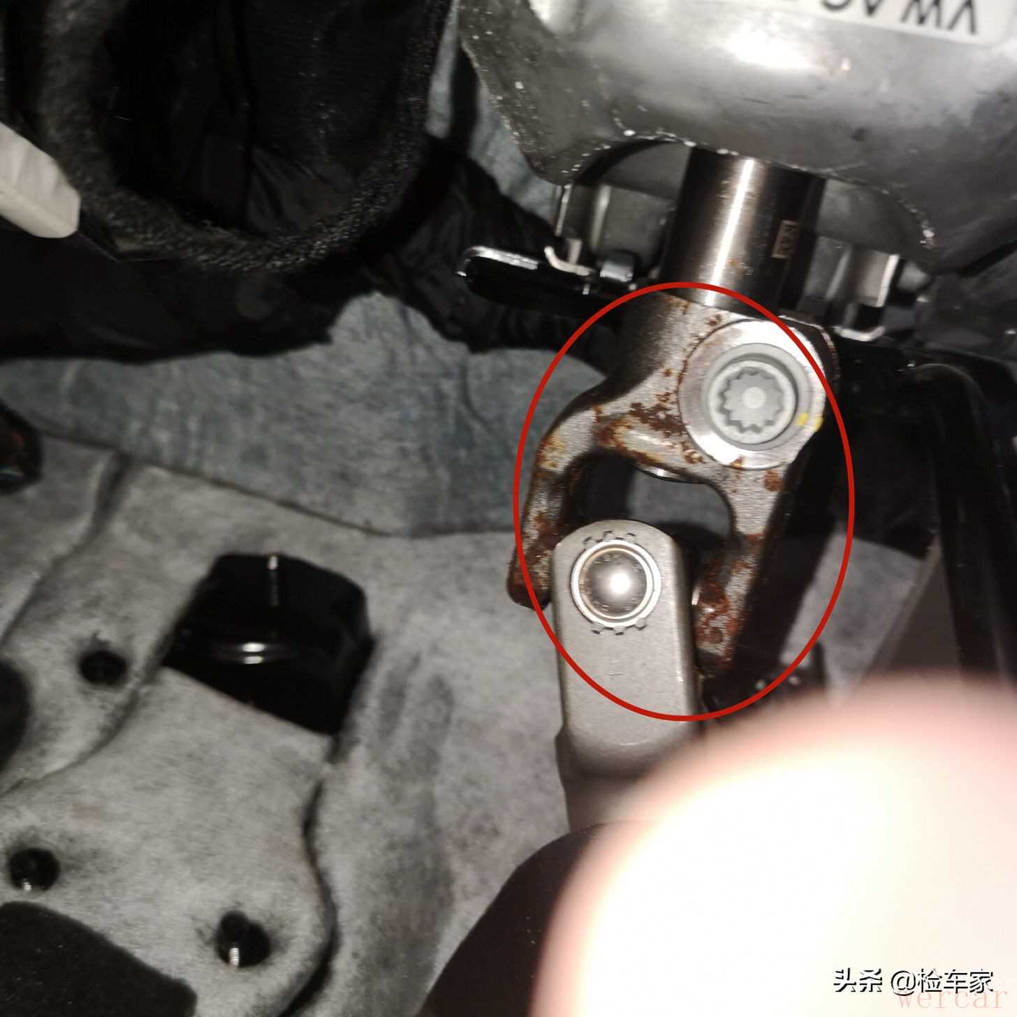 而且检测到转向机构的时候,发现了转向柱部分存在锈蚀的情况,但并不是特别严重。