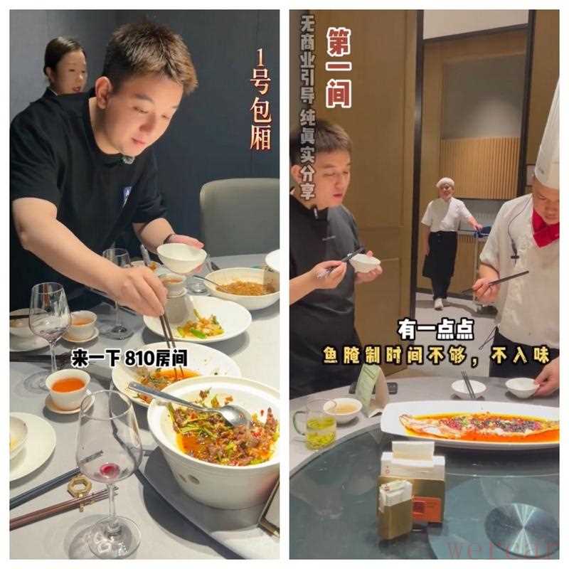 直播中另一个引发热议的画面,是徐记海鲜的二代接班人“伟伟子”在客人离开后,走进包厢“吃剩菜”。