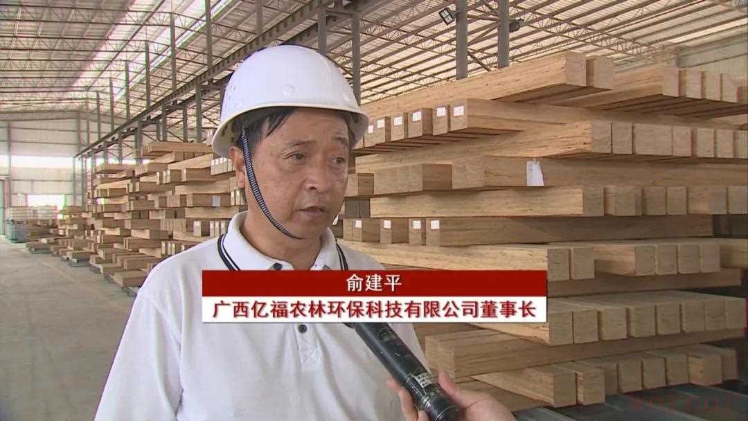 广西亿福农林环保科技有限公司董事长 俞建平 :国家发改委2020年度把我们企业列入绿色计划100项第38项,是木材行列全中国唯一的一家企业,目前我们的产品是供不应求的,也代表了中国木材制造的最高水平,我们的产品价值在原来的横板三合板的基础上,我们是翻了几番的产值。