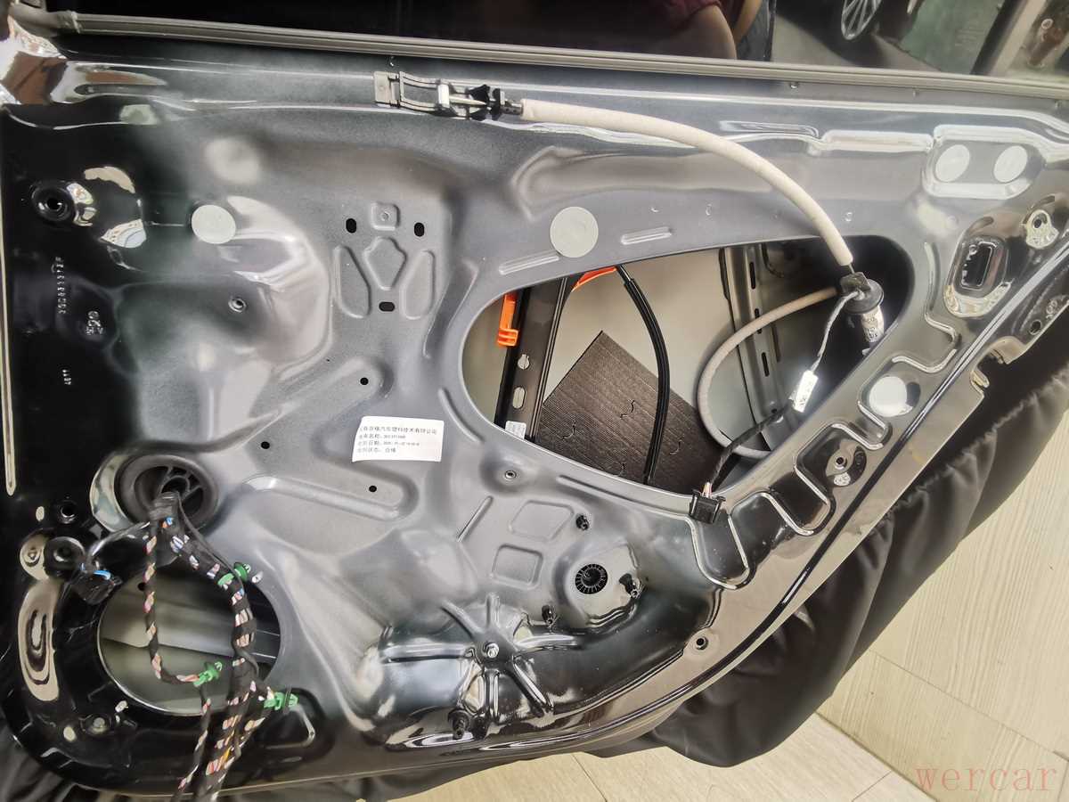 然后再看下经过我们大能隔音施工完成后的四个门板,完全是原车门板不能比拟的。