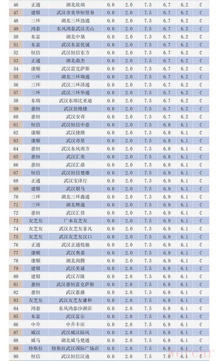如排名倒数第二的武汉江城威汉4S店和倒数第五的武汉奥诚4S店,负面信息均涉及4S店的服务问题。