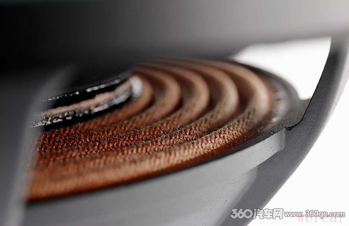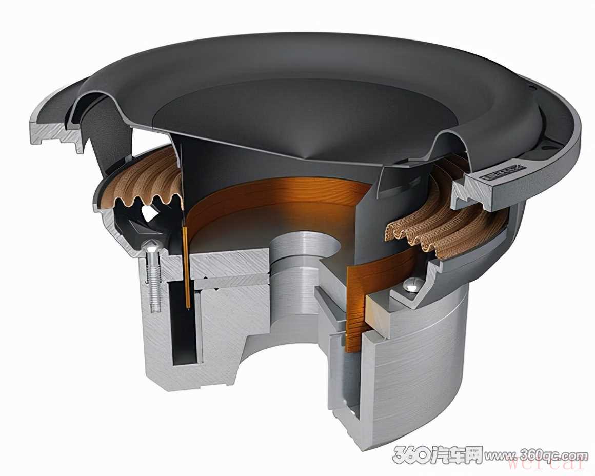 上述提到的大尺寸CCAW铜包铝音圈,赫兹在细节上也有讲究。音圈的绕线工艺能让冷却能力均衡一致,音圈和锥盆之间再由一层玻纤+聚酰胺复合材料缠绕,提升散热能力和刚性,应对大输出大动态。而且中间采用全铝短环设计,实现最小的低频失真,延伸性最大。