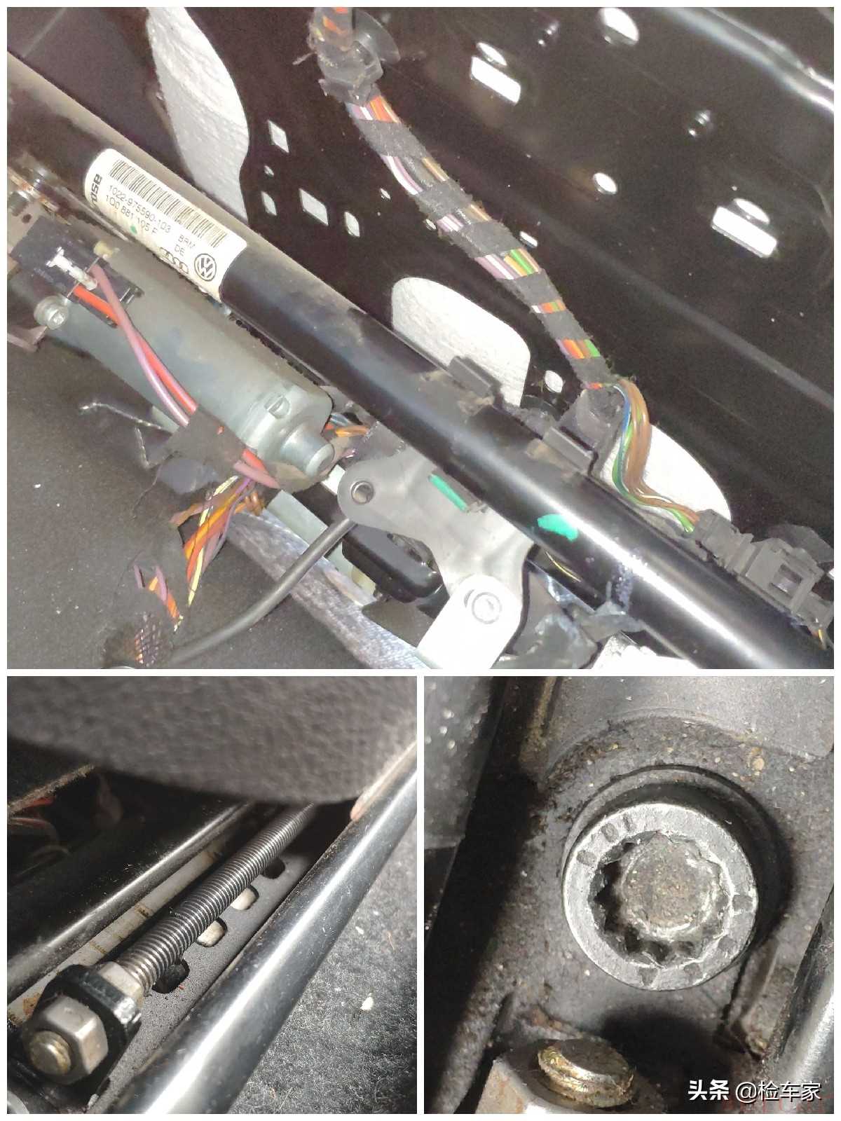 因为车子改装了座椅,所以全车的座椅都是有个拆卸的,但是座椅内侧骨架没有生锈,泥沙水渍等现象。