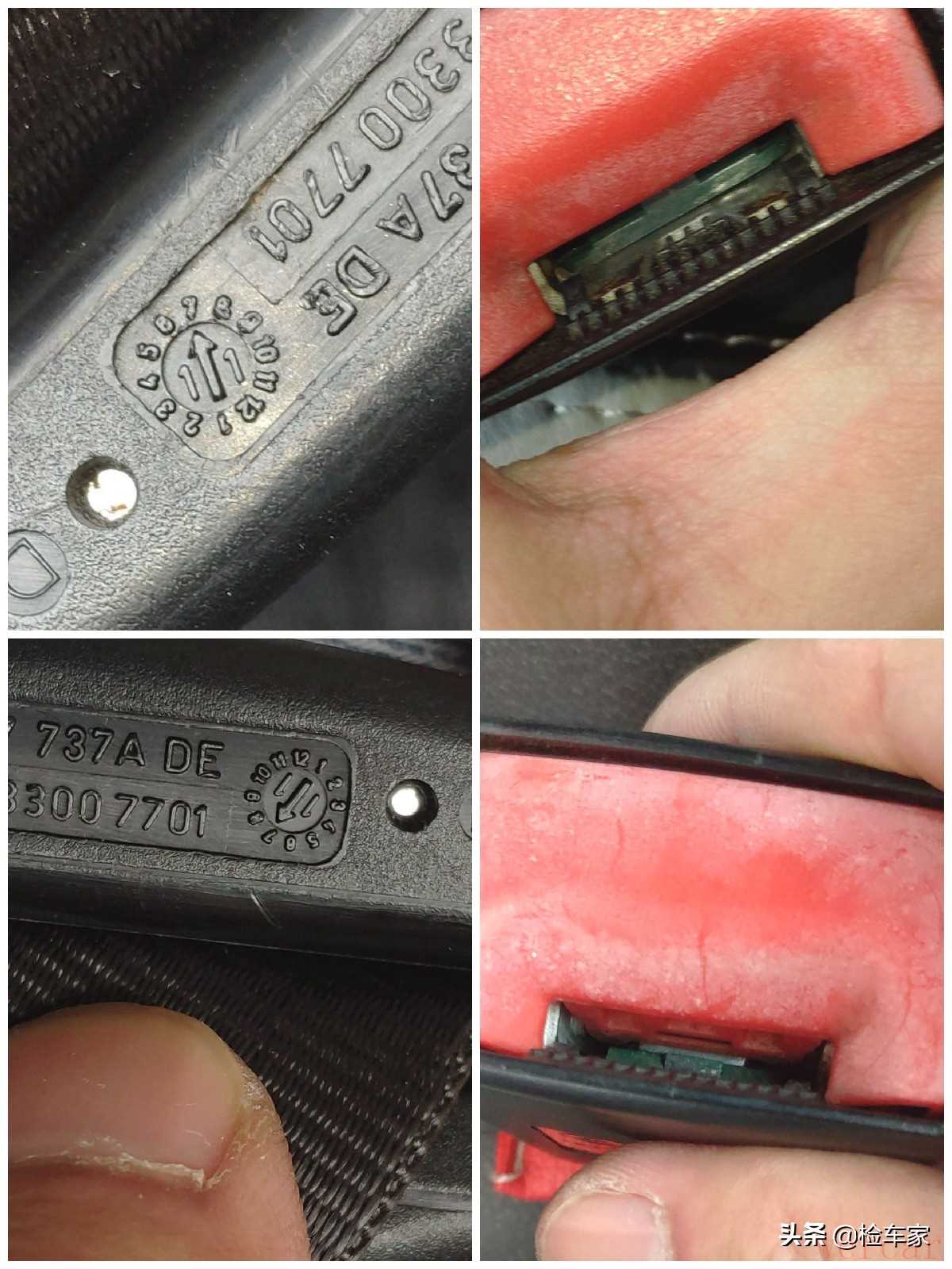 全车安全带生产日期都是符合原车出厂日期的,卡扣内侧也没有泥沙生锈等现象。