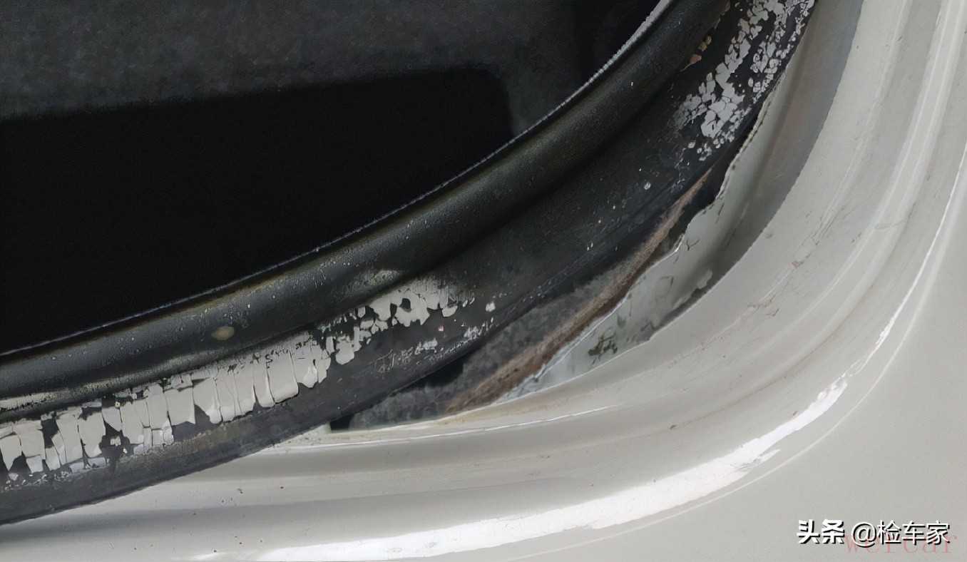 整个尾灯框架以及后尾板的修复水平真的很垃圾,里面后围板目前还是变形的状态,就导致后面的胶条装不上。就这么说吧,这样的修复手艺要是放在我当学徒那会儿,是得挨揍的。