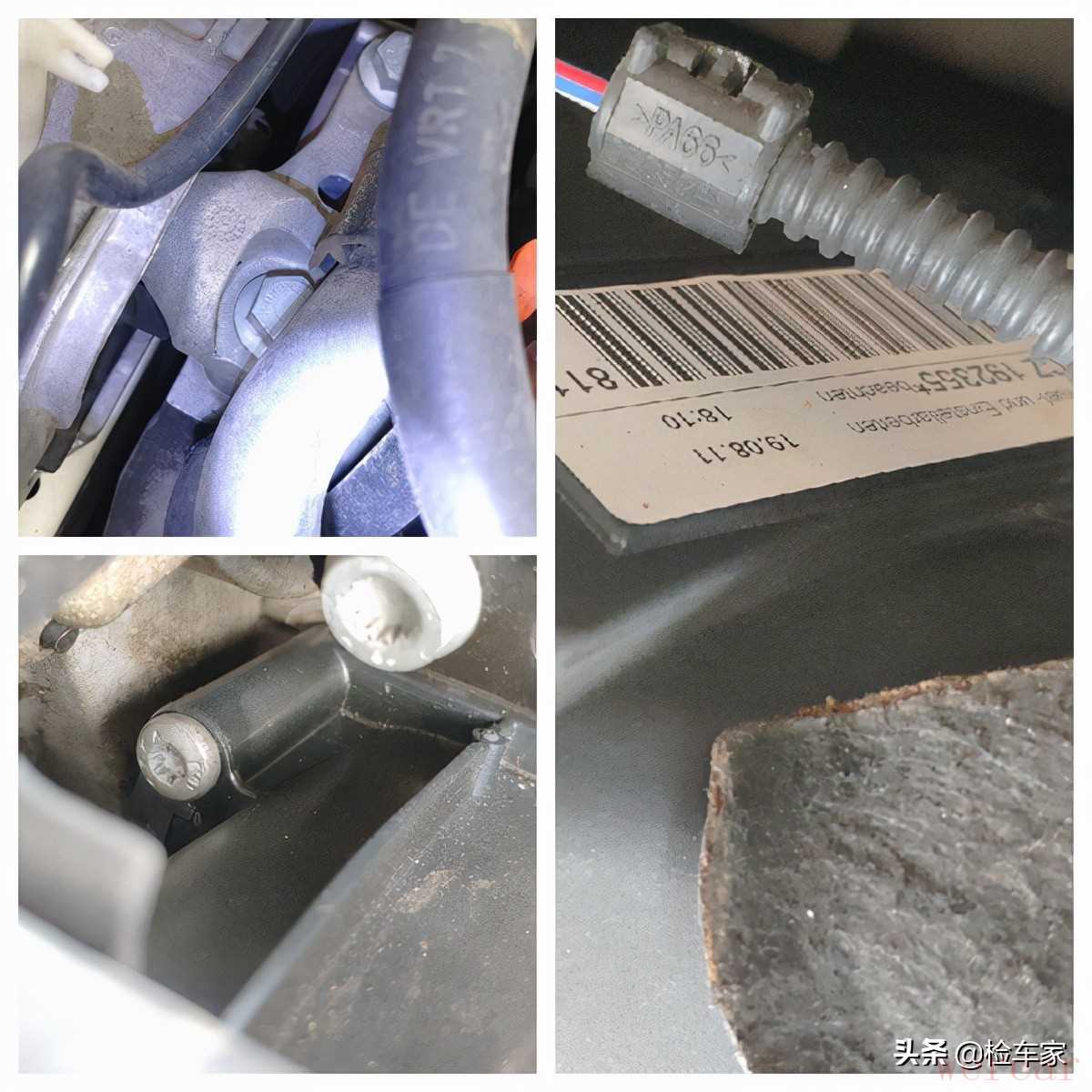发动机两端的固定机脚螺丝没有拆卸拧动痕迹,近期机关有过拆卸,但排气歧管并没有那么结合目前的情况,发动机是没有吊装过的。那么拆卸进气就属于保养养护导致的拆卸。侧面的证实盖也没有拆卸拧动痕迹,生产日期也和原车出厂日期对得上。