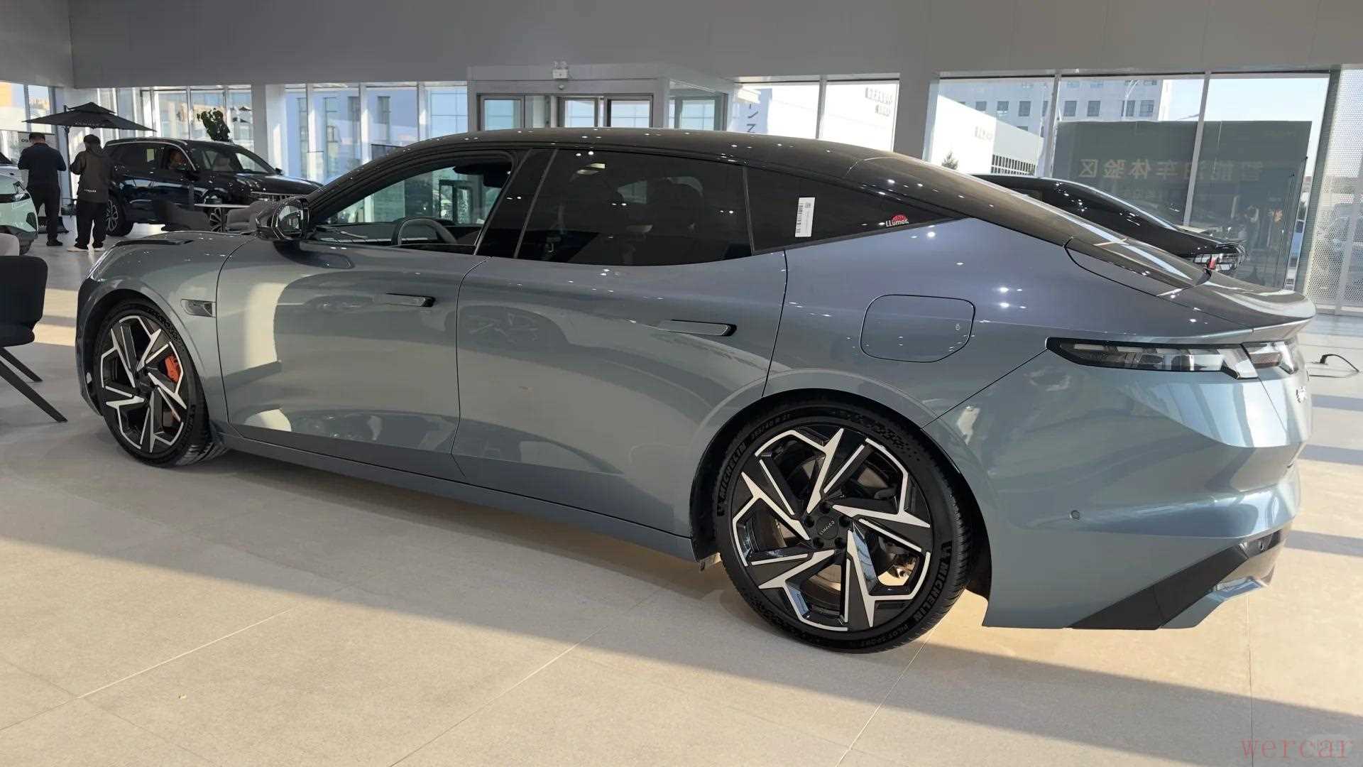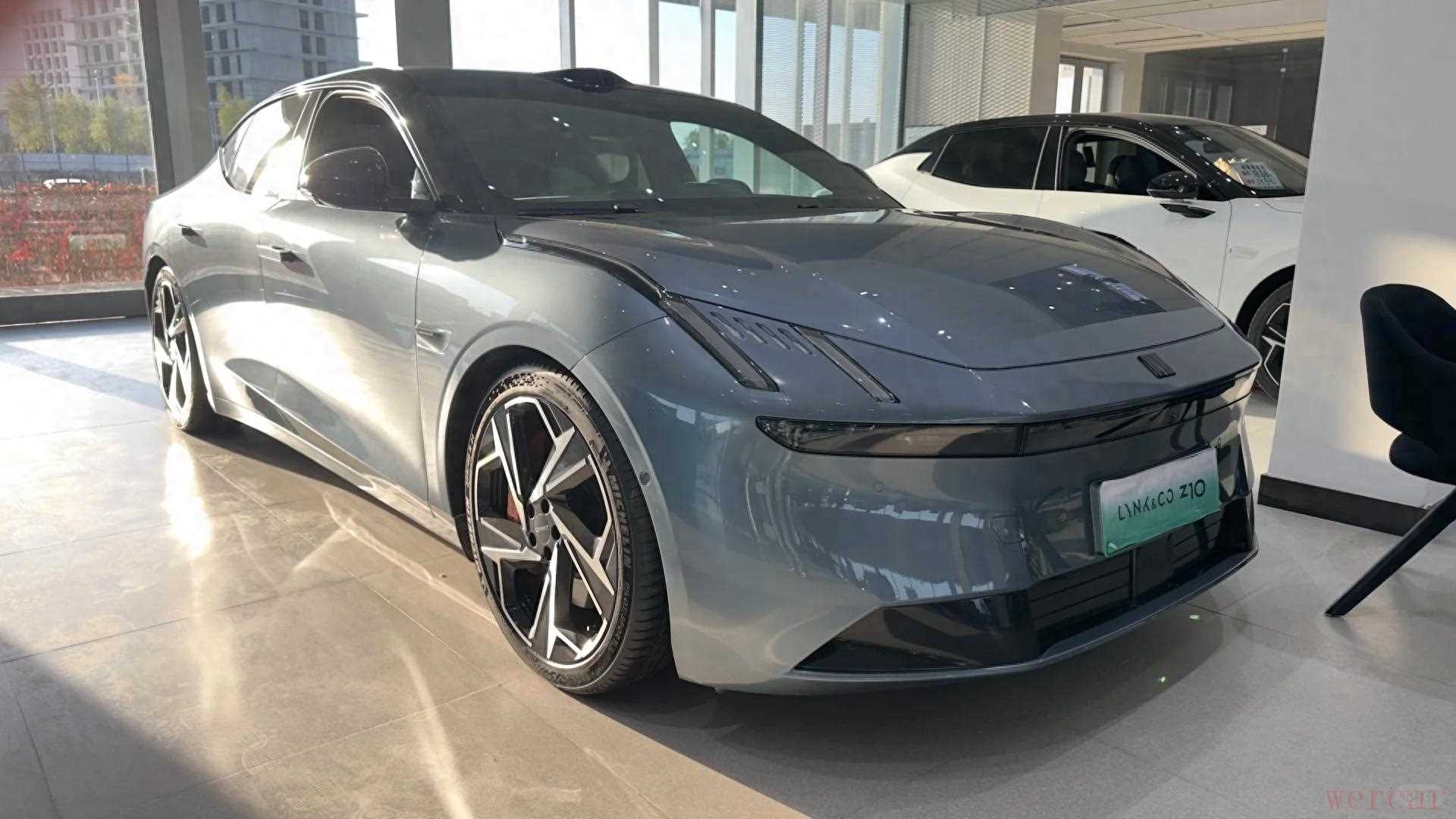 静态看领克 Z10 的银色车身,真有种 “清晨阳光洒在车上” 的质感,就是官方说的曜日银,远看特别显档次,还特经脏,这点太实用了。搭配黑钻棱切穹顶的撞色设计,钻石切割般的车顶线条特精致,侧面的流光雕刻腰线柔中带劲,轿跑姿态一下就出来了。