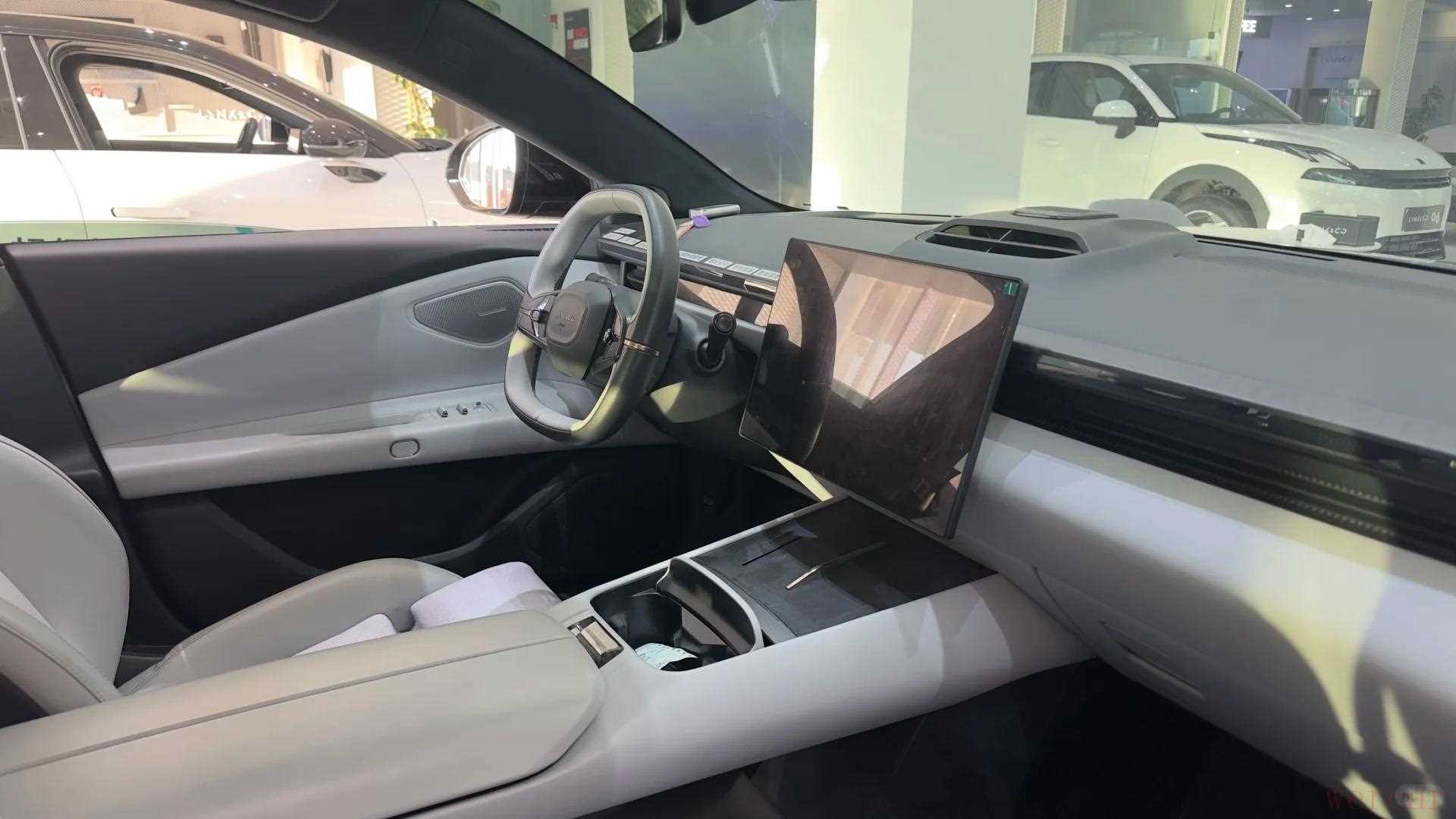 "座舱布局:" 中控区域通常比较简洁,物理按键相对较少,操作逻辑可能更偏向数字化。