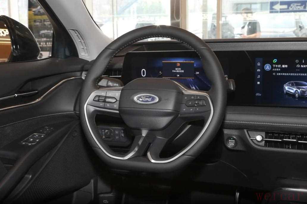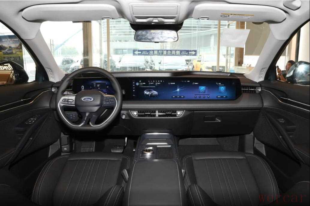 动力方面,福特蒙迪欧内饰采用简约科技风格,以横向展开的数字化布局为核心,引人注目的是长达1.1米的巨幅屏幕组合,由12.3英寸液晶仪表盘和27英寸4K中控屏无缝拼接,营造出沉浸式的智能交互体验。中控台通过不同材质的搭配,既保持了整体的简洁感,又增添了几分活力。操作区域配备了电子旋钮换挡和三辐平底运动方向盘,方向盘上集成了多媒体控制和驾驶辅助按键,常用功能触手可及,强化了驾驶导向的氛围。