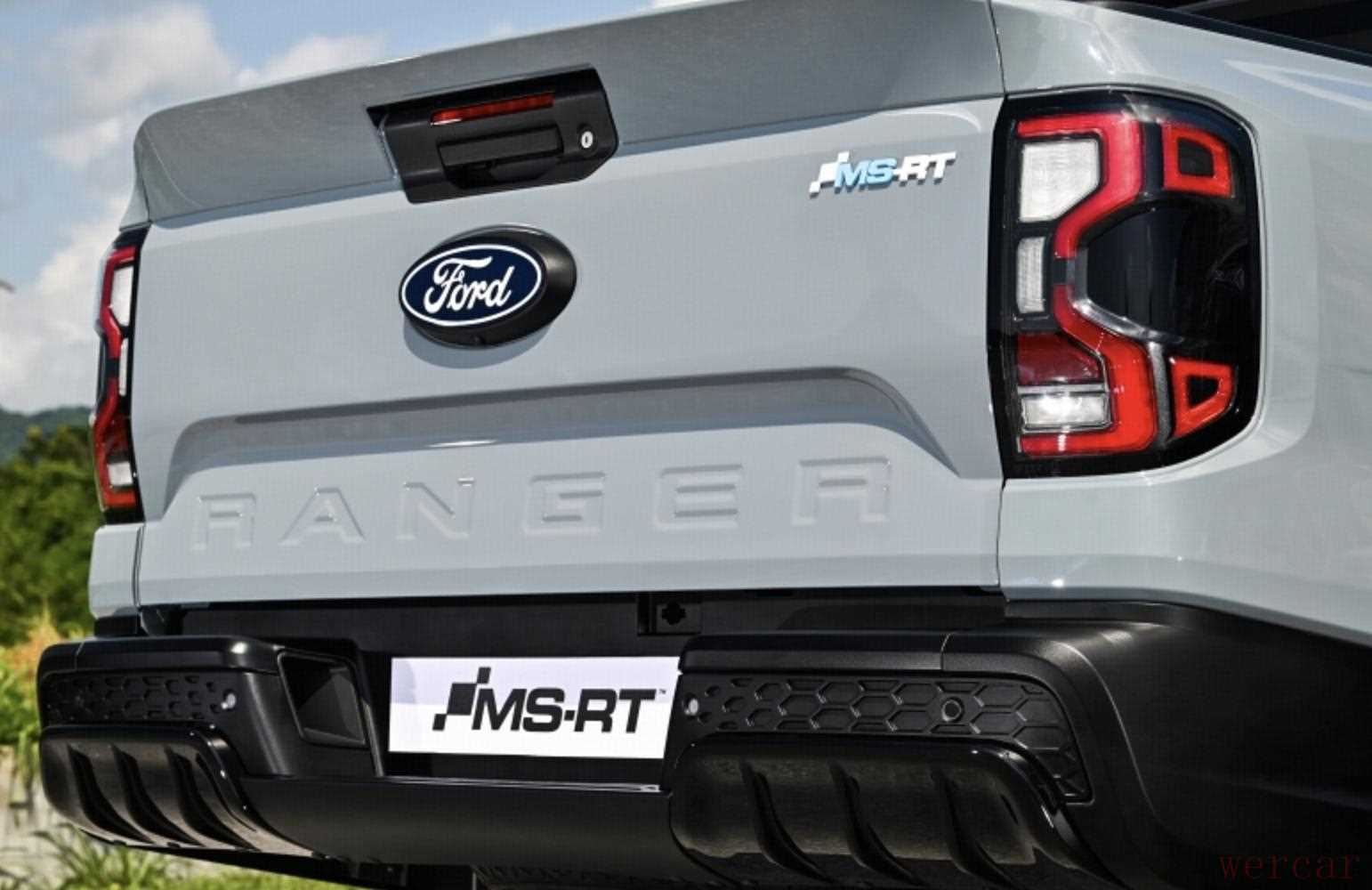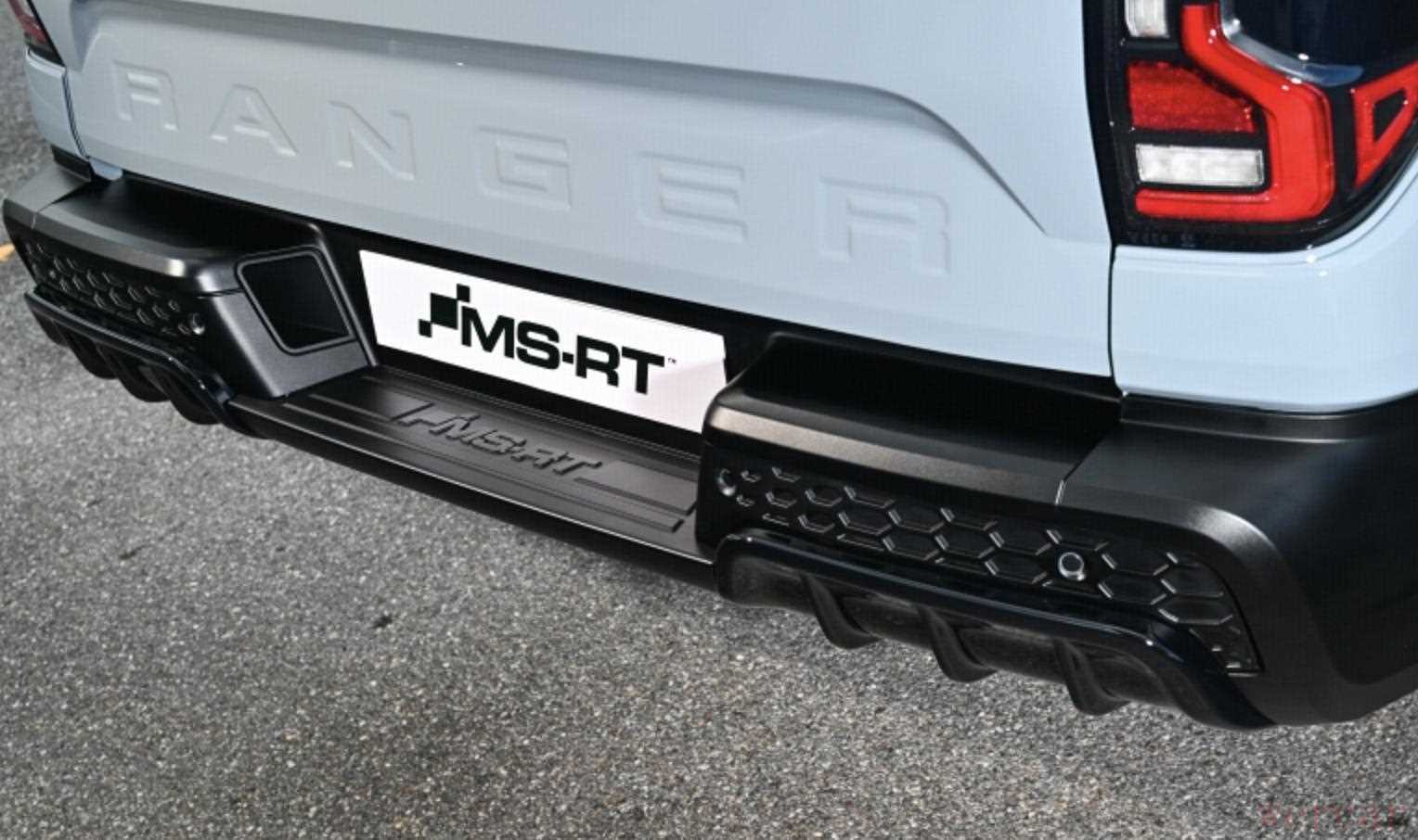 福特Ranger MS-RT在车尾设计有小鸭尾造型的扰流板,并且尾门右侧MS-RT标识表明身份信息,后保险杠下侧设计有扩散器。据悉,福特Ranger MS-RT装备有全新运动型减振器,车身高度同步降低40毫米。