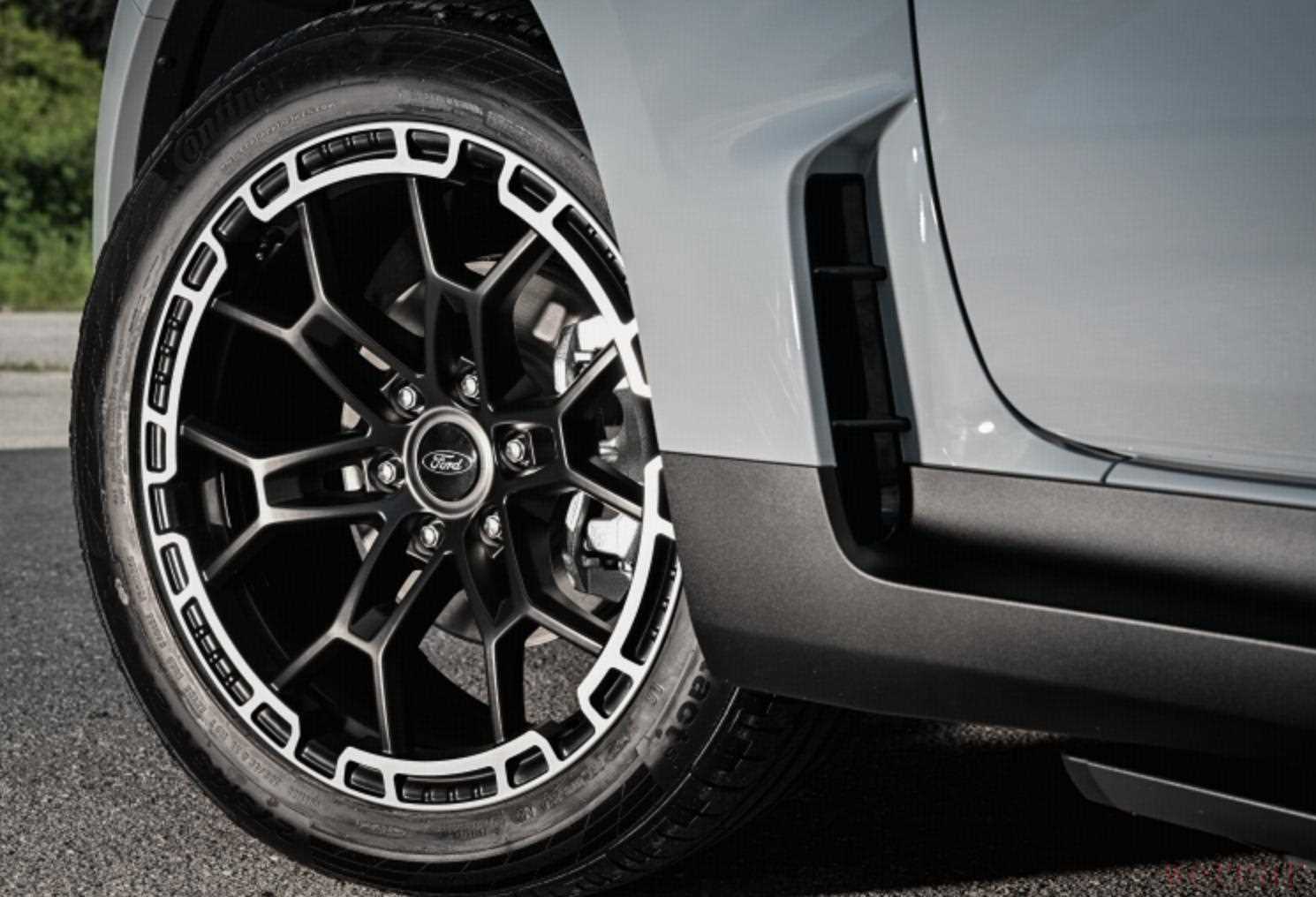 福特Ranger MS-RT在车顶后部安装有扰流板,并配备有电动侧踏板。据悉,该车对车身进行加宽处理,前轮拱底部设计有通风口,配备有21英寸轮辋,轮胎尺寸为275/45 R21,整体展现出较运动的风格。