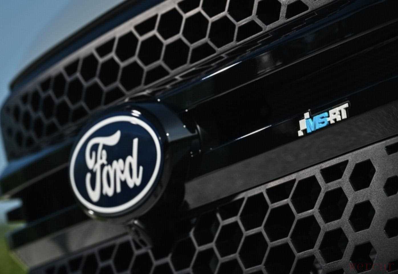 据悉,福特Ranger MS-RT由福特拉力赛合作伙伴M-Sport的子公司MS-RT开发打造。具体来看,该车在车头装备采用全新蜂窝造型的进气格栅,并用黑色饰条连接两侧大灯,细节加入MS-RT标识。此外,该车还采用新造型的前包围,两侧设计有通风口。