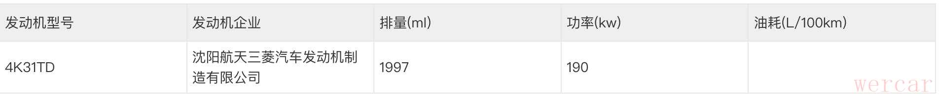 "驱动形式:" 通常为涡轮增压(Turbocharged),以提供更好的动力响应和扭矩。