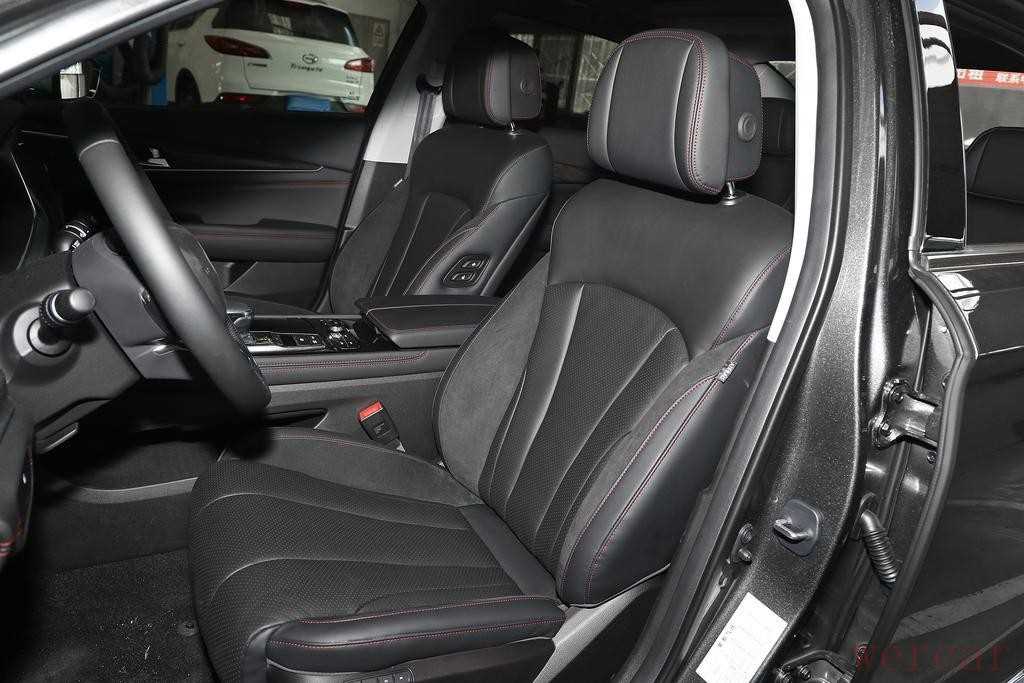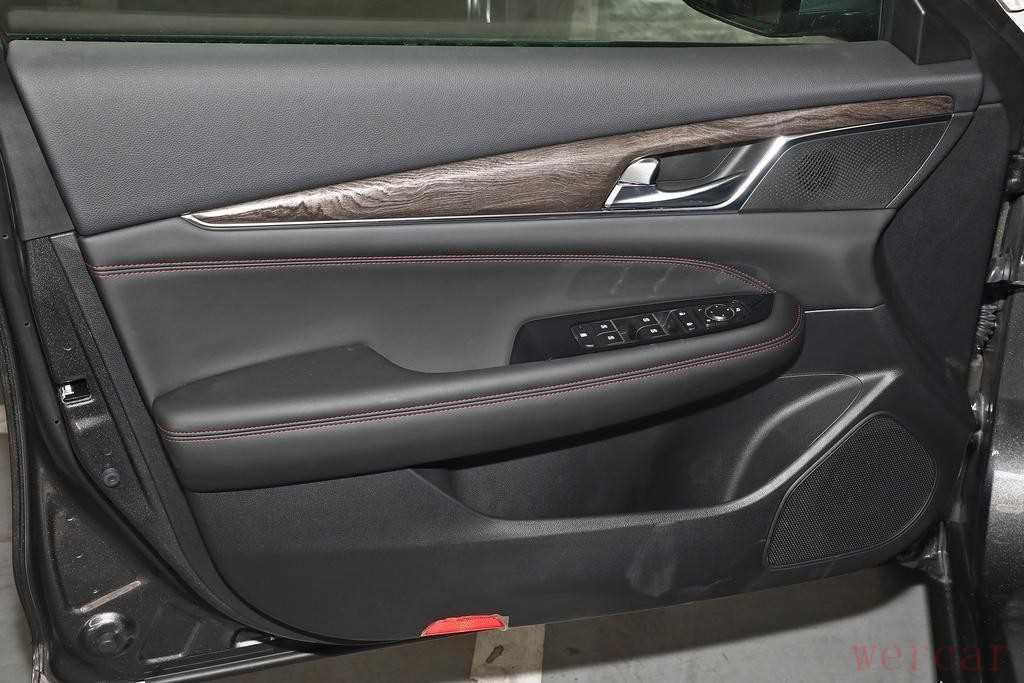 内饰用料自然是对得起定位,车内视角所及的部位大部分都是采用软性材质包覆,摸起来手感较软,即便是新车也没什么气味,说明传祺比较用心,没采用劣势皮革,甚至在门板处还有麂皮材质点缀,对豪华感提升起到不错帮助。不过这次我们试驾到的这款次顶配,内饰颜色以黑为主,看起来比较沉稳,另一款黑灰可以选择,看起来时尚感更强一些,包括副驾驶面板处的仿木纹饰板也改为银色。