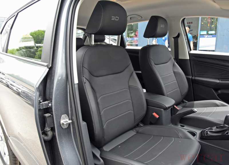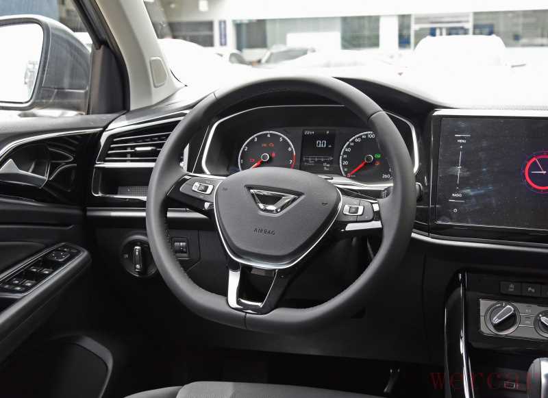 再来看看内饰,捷达VS5的内饰风格和大众一样,都是非常简约耐看,仪表盘是传统的机械指针仪表,三幅式方向盘的样式和朗逸、宝来很相似,中控台整体偏向驾驶员一侧倾斜,所有的按键、旋钮都一目了然,很容易就能上手。唯一遗憾的是这台车的车内用料是以硬塑料为主,软包的区域并不多,档次感没法和同价位的国产车相媲美,好在做工比较细致,各个接缝都比较均匀,符合德系车一贯的严谨作风。