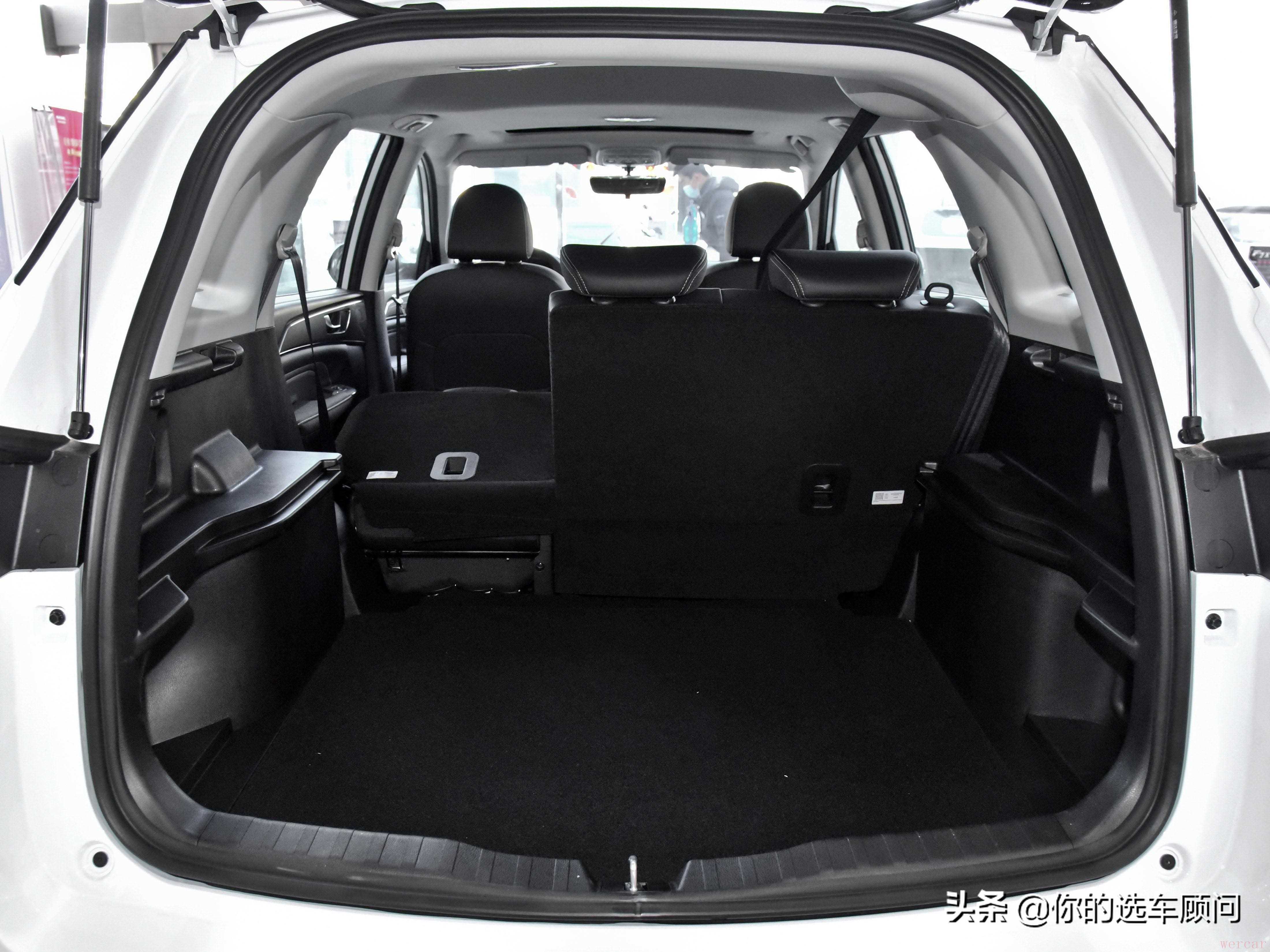 "后备箱:" 标准容积就已经很大,并且后排座椅支持比例放倒,放倒后能形成非常可观的整体装载面积,轻松容纳几个大尺寸行李箱或进行轻度装载。