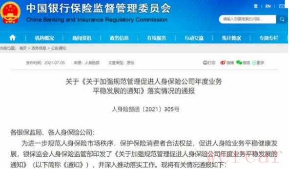2021年7月5日,银保监会发文《关于加强规范管理促进人身保险公司年度业务平稳发展的通知》落实情况的通报,点名了21家人身险公司的各类违规行为: