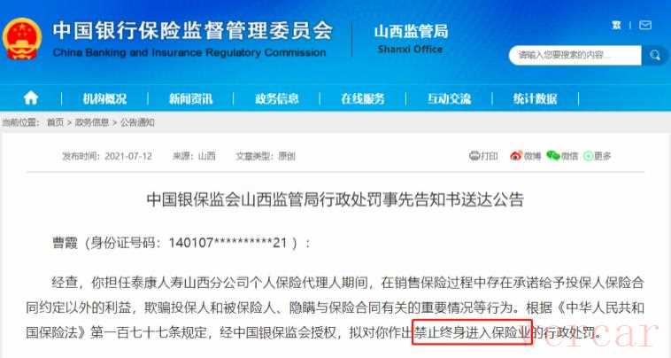 7月12日,银保监会山西管理局发布了一则行政处罚: