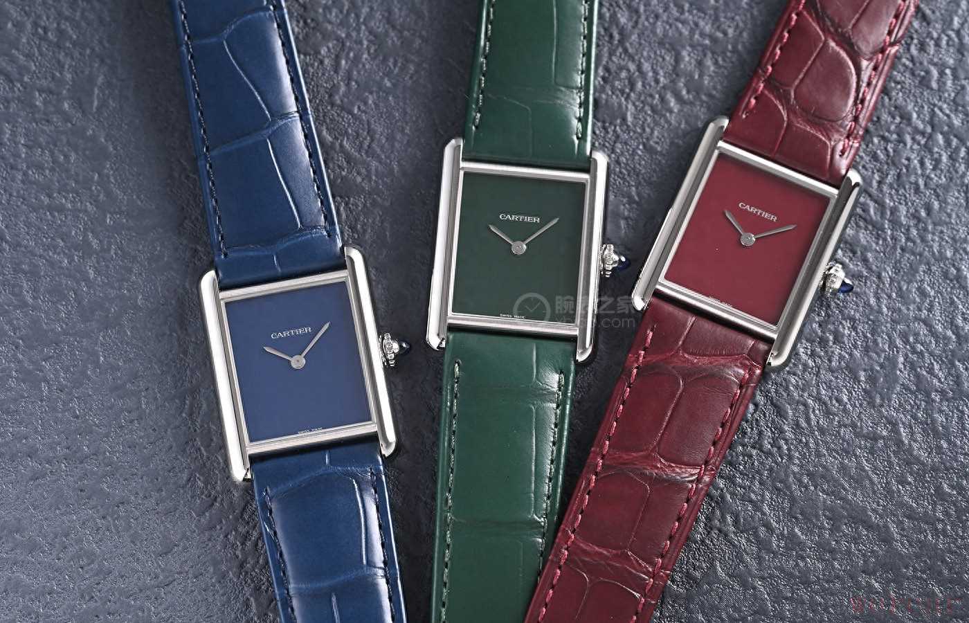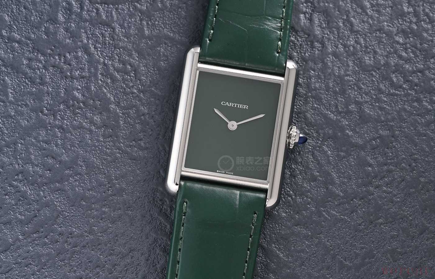 坦克系列中又分出多个支线,如Tank Louis Cartier、Tank Française、Tank Américaine、Tank Solo等,以及近年来回归的Tank Must。Must系列最早出现在1970年代,是卡地亚为了提供更亲民选择而设立的副线。在设计语言上更为简洁,同时也引入了更多色彩与材质变化。WSTA0056这款是绿色表盘的女士表,就属于Must系列回归后的新作。
