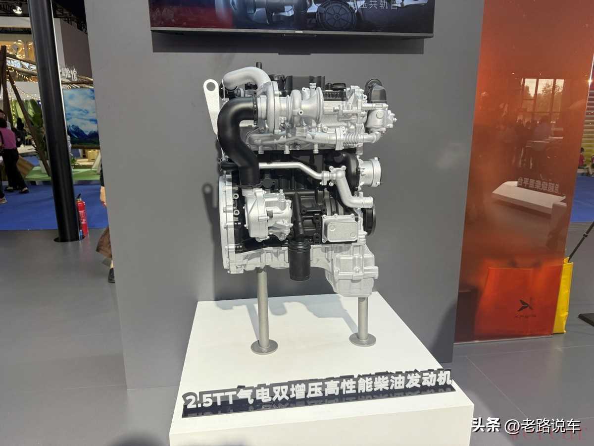 车展现场展示了一台奇瑞2.5TT气电双增压高性能柴油发动机,这也是即将用于威麟皮卡的新动力。