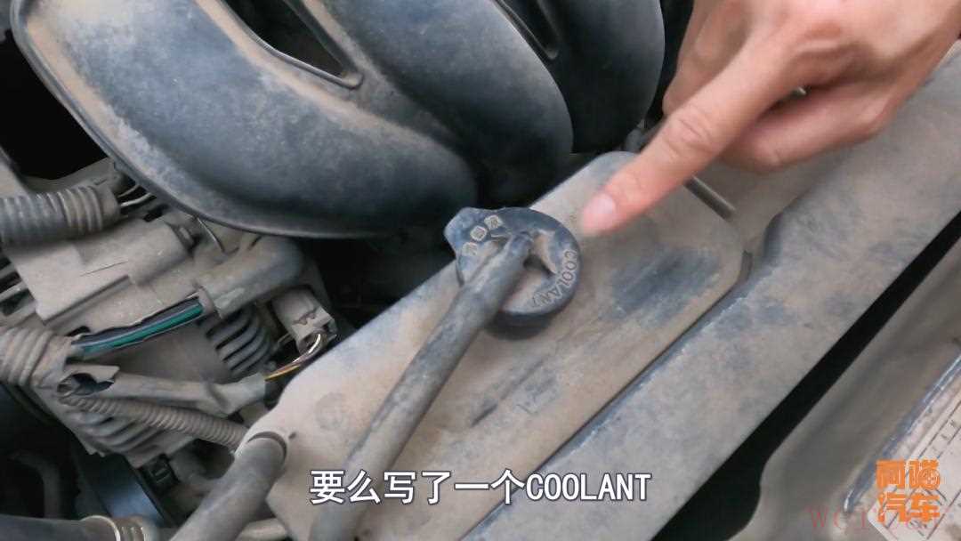 现在很多车子都写了,要么是写了冷却液三个字,要么写了一个COOLANT的英文单词,有些车子设计得比较好,就是设计的位置,它是可以看见的有些车子,像丰田系的设计就不是那么很好。