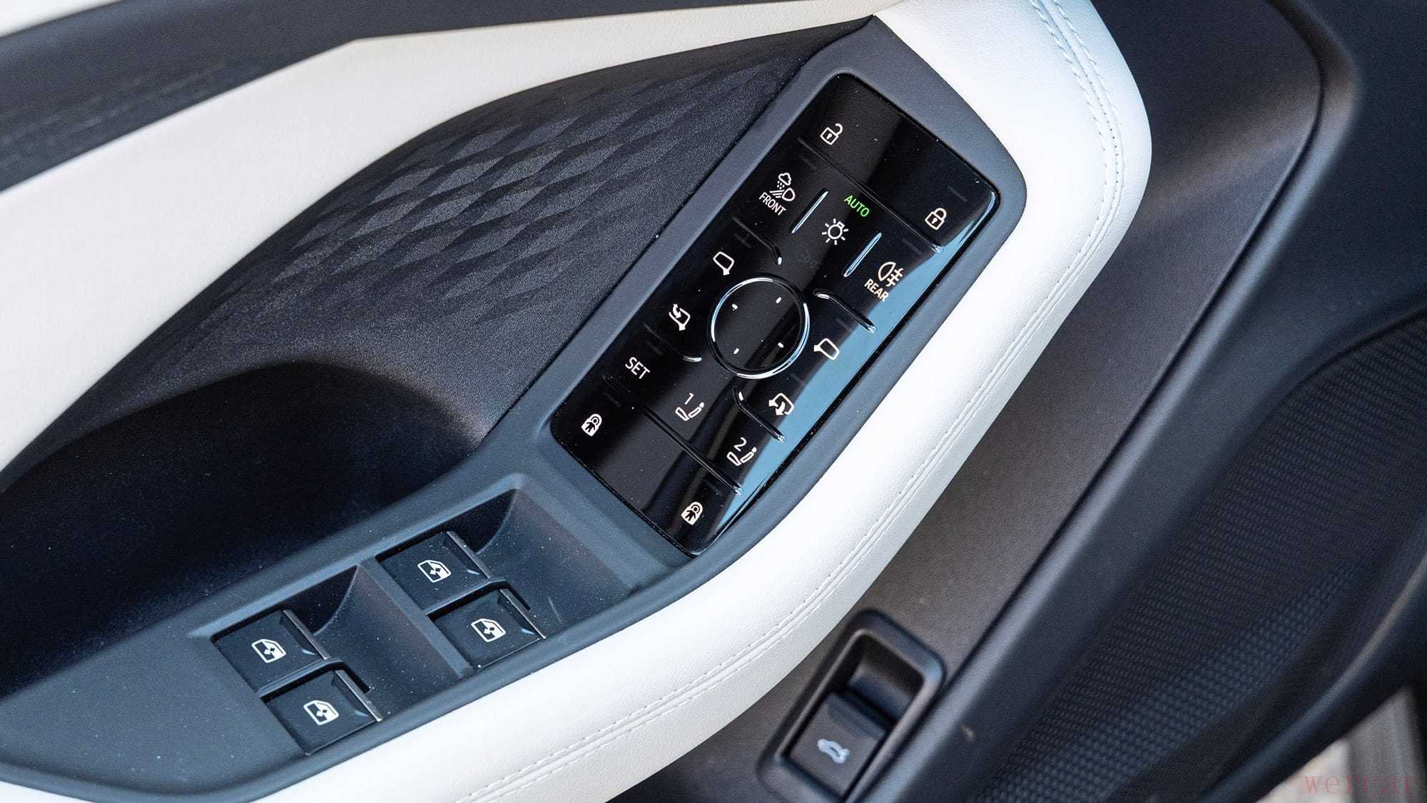 门板控制区略显复杂:包括后视镜调节、儿童锁、矩阵大灯控制等。但值得称道的是其数字OLED尾灯,当后方车辆靠近时,会自动扩大发光面积,提升可见度与安全性。