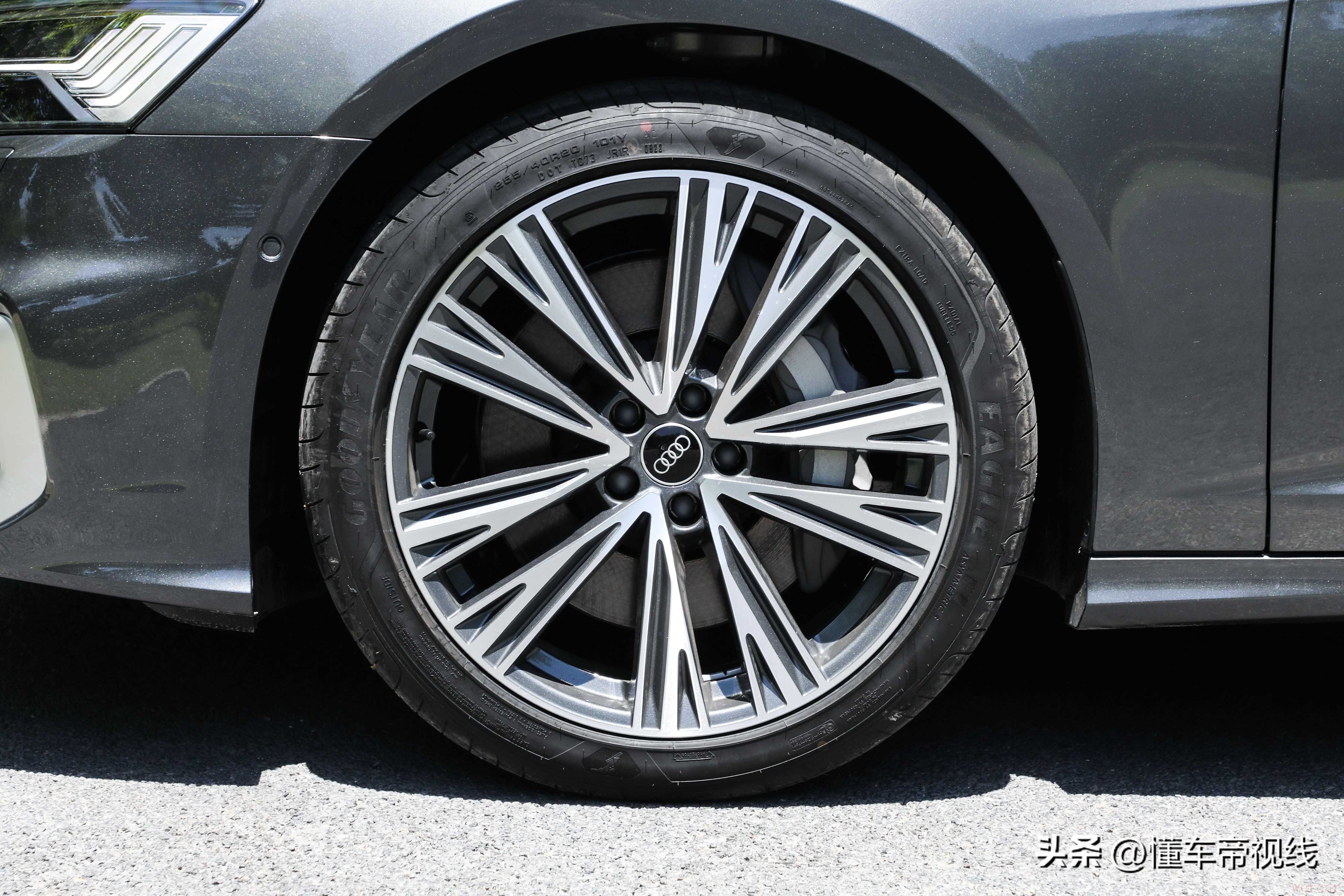 20英寸的多辐式轮辋采用了双色涂装,在视觉效果上大气且庄重。轮胎选用了固特异EAGLE F1 Asymmetric 3系列,尺寸为255/40 R20,这款轮胎以注重操控性能为主,单条轮胎在网上的价格为1700元左右,虽然其性能方面会比价出色,但是后期更换成本相对较高。