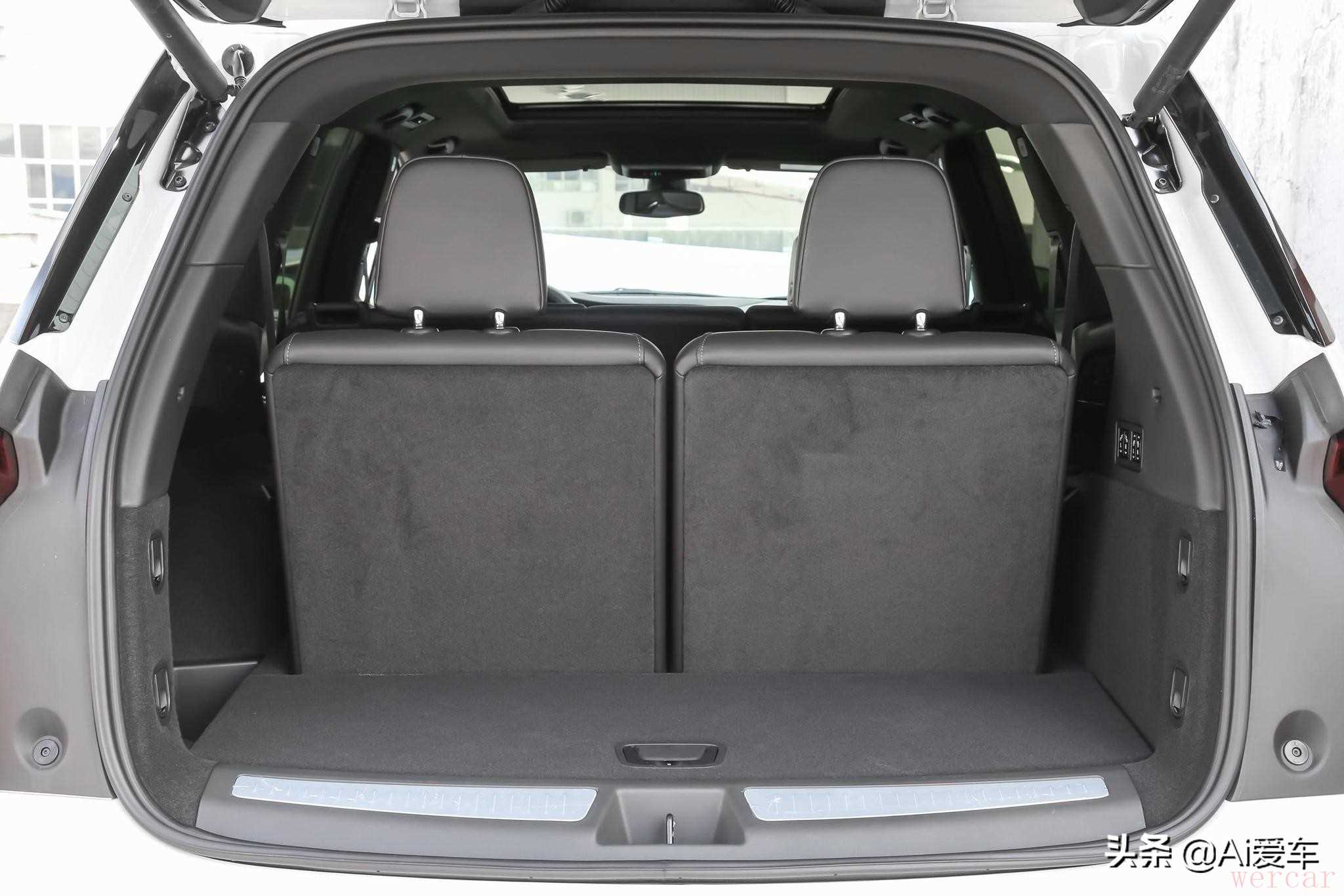 往后来看,尾部造型的气势更强,7子分叉式尾灯,通过镀铬饰条连接,有着不错的一体效果。双出的镀铬大尾排,融合后包围内,给整车带来不错运动氛围。电动尾部用起来就是方便,配有感应开启,位置记忆功能。