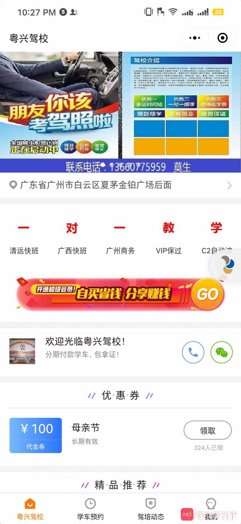 据记者了解,莫某旗下的驾校线上、线下均有运营,线上有一个名为“广州粤兴学车”的微信小程序,介绍该“粤兴驾校”有不同的学车套餐。驾校全称为广州市粤兴机动车驾驶技术培训有限公司,创建于1999年。