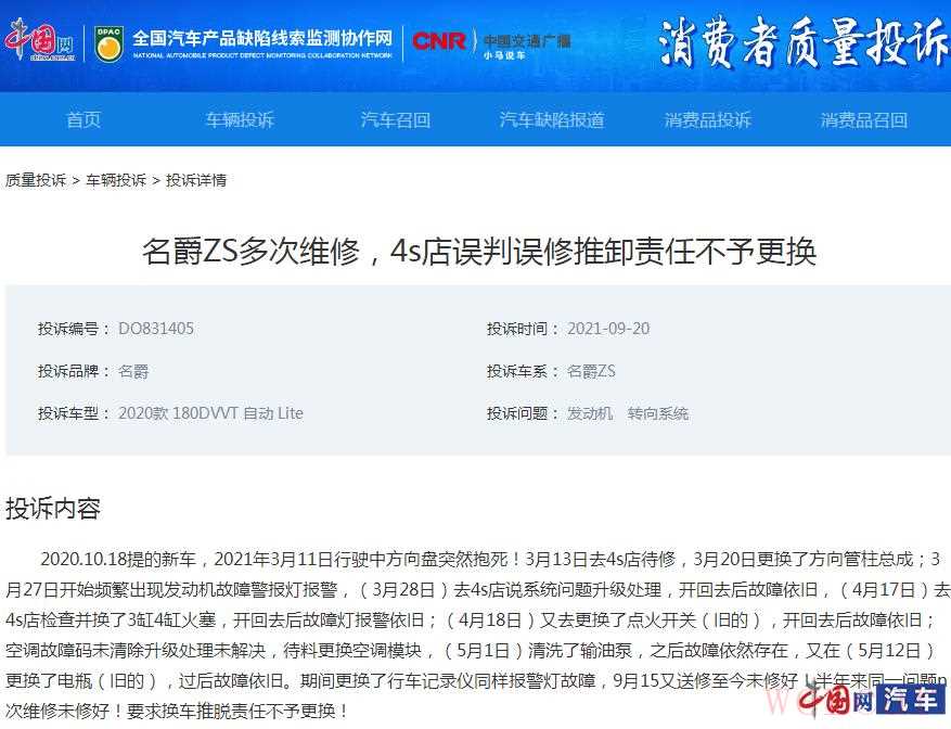 近年来,在国内汽车市场中,各大自主品牌不断发展壮大,在产品体验上已不输合资品牌了。这其中,上汽名爵的优势并不明显,影响力也较为有限。但即使处在如此的劣势下,上汽名爵却对车辆质量投诉问题不够加以重视。