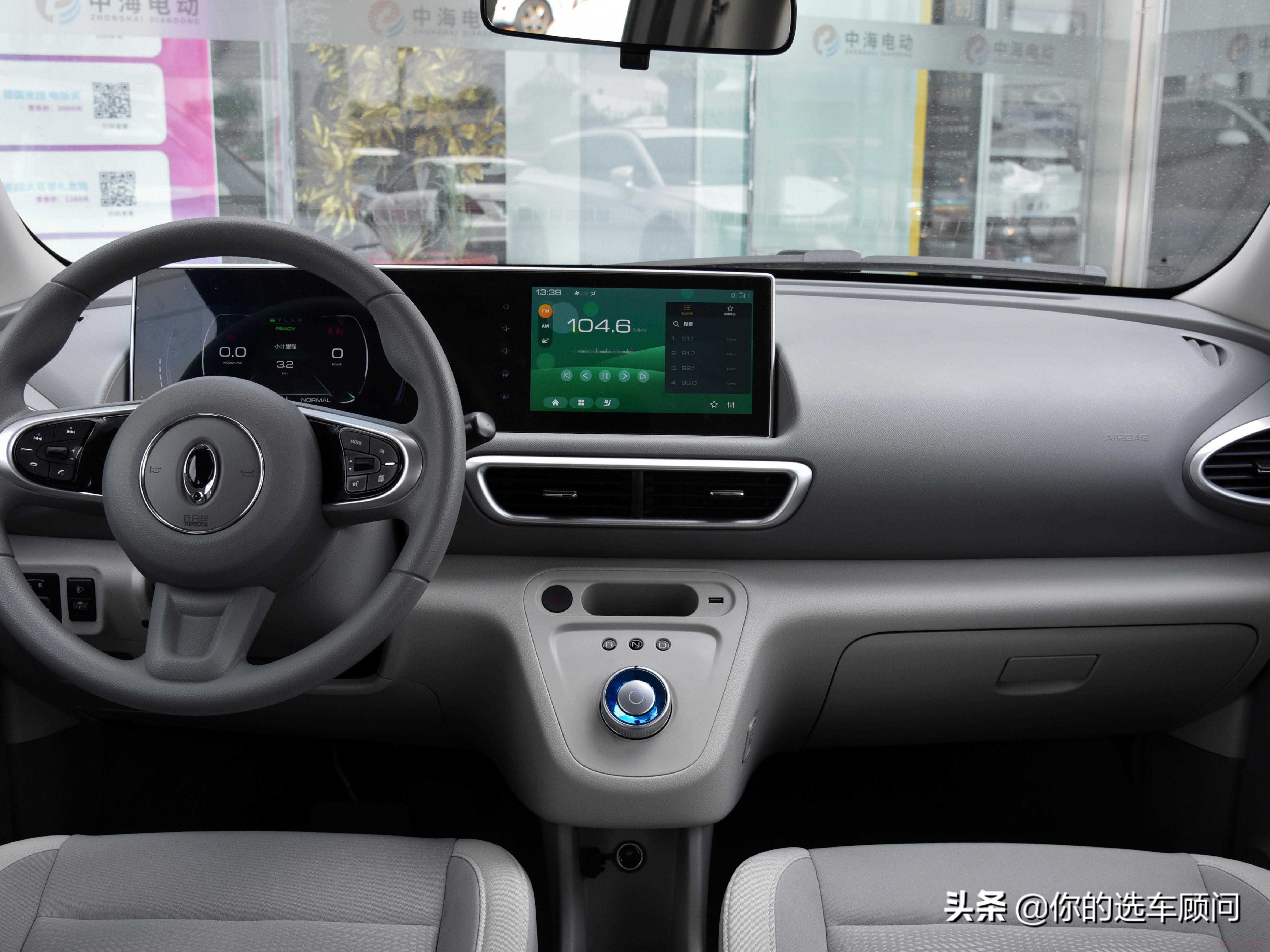 内饰设计上非常简单,但是简单归简单科技感一点也不弱,相比同品牌的欧拉黑猫,欧拉白猫应用上了双联屏设计,全液晶仪表和带有一定车联网功能的车机要比黑猫更好用一些。
