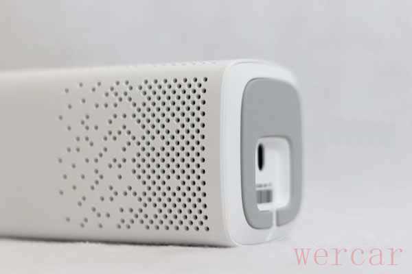 小爱同学是需要插电使用的,在音响底部的线头的设计个人觉得非常好,这样不会压到线,音响的顶部如开头的那张图一样,拥有一个音量调节环和五个按钮(一个暂停/播放按钮,上一首下一首按钮,禁用麦克风按钮,启动匹配模式按钮),音响分布在音箱的底部,采用创新的声波导技术,让音箱形成了360°环形声场。大面积的被动低音扬声器,更扩展了低音下潜能力,这样也有利于散热,所以看起来就很像空气净化器啦~ 对于这个小爱的这个设计,个人还是非常喜欢的