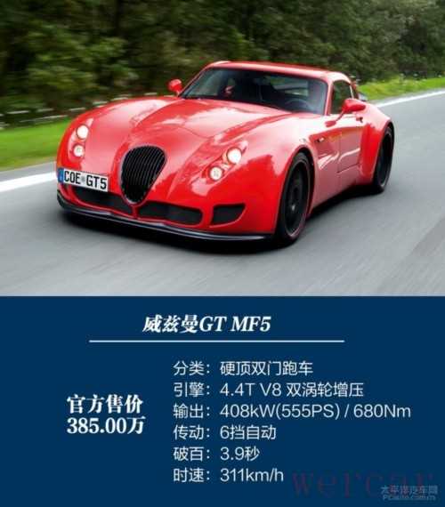 威兹曼GT MF5可就更厉害了,如今这一代的宝马M5发动机到手,功率调至555PS,性能数据绝不含糊,当然售价也是M5两倍以上。