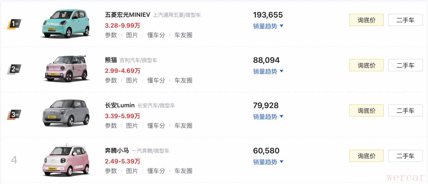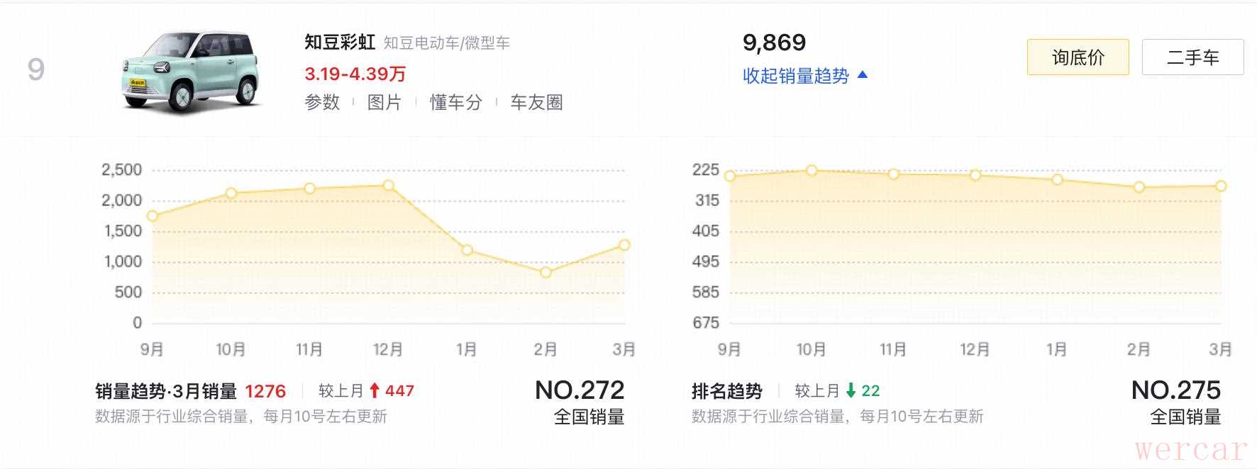 根据懂车帝销量排行榜显示,知豆彩虹近半年销量为9869辆,与其定位、售价相似的五菱宏光MINIEV(指导价3.28万元起)、长安Lumin(指导价3.79万元起)、吉利熊猫(指导价2.99万元起)、奔腾小马(指导价2.49万元起)等车型近半年销量均在6万辆以上。您认为续航里程的提升会成为您购买知豆彩虹Pro的理由吗?欢迎在评论区留言讨论。