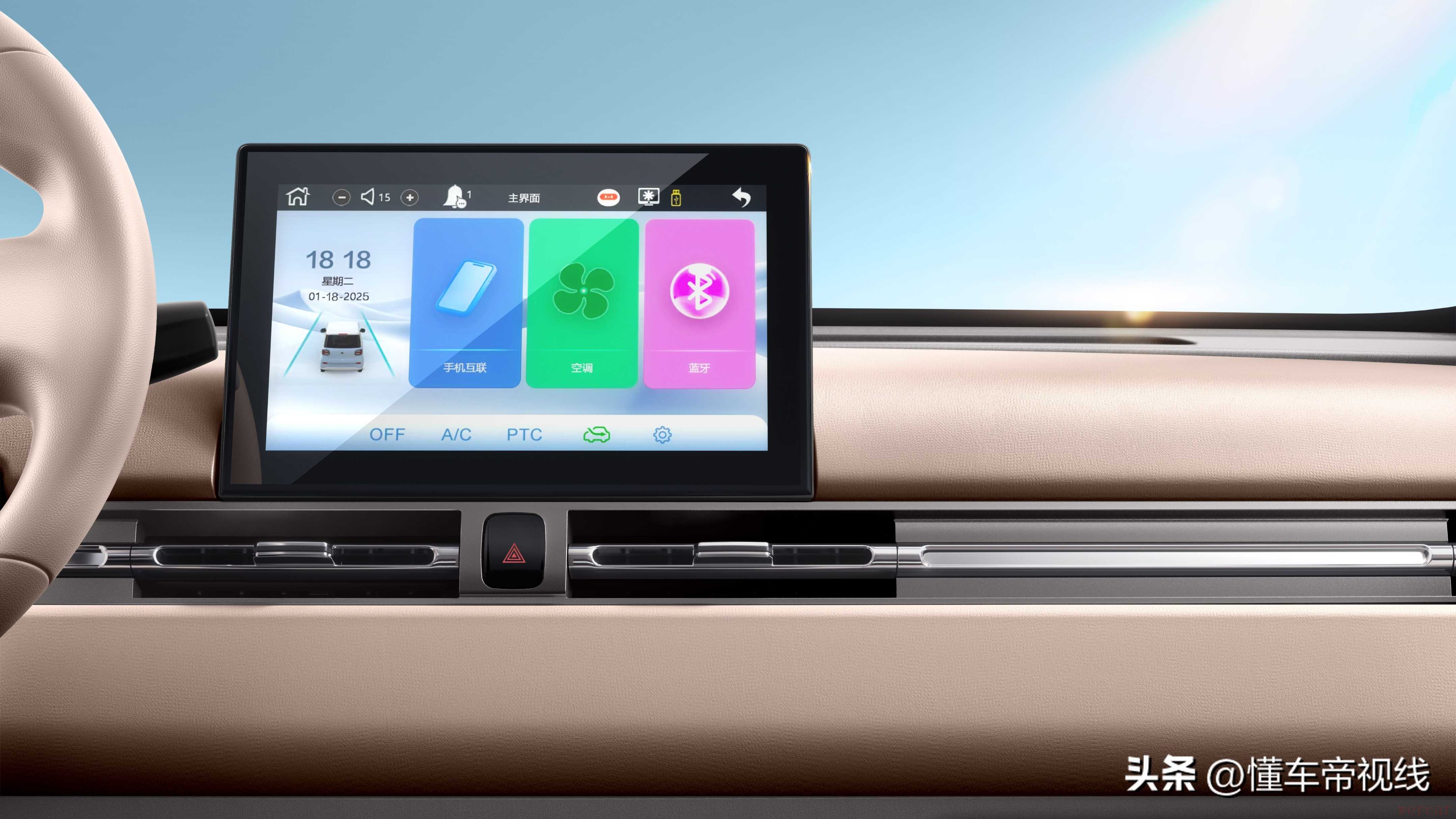知豆彩虹Pro车内则提供了砂岩咖、雾岚灰、林影绿、云漫蓝、霞光粉等色彩搭配,配备5英寸LCD彩色仪表、9英寸中控屏,应用最新交互界面,并新增无线苹果CarPlay功能。另外,该车全系均会配备皮革座椅,还提供超20处储物空间,后排座椅放倒后的后备厢容积可达1034升。