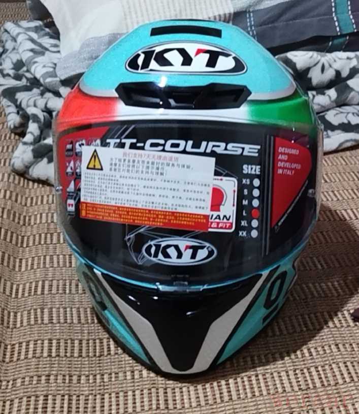 6月份买了在京东上买了一个kyt牌子的头盔,ttc-12大尾翼感觉这个花色比较好看。遗憾的这是单镜片的,只有一个透明镜片没有内置的黑色墨镜。其实透明镜片个人感觉是比较实用的(原厂的镜片防雾效果比较好,骑行中又风进来不会起雾。),特别是夜晚路况看的比较清楚安全系数更好,但是感觉不帅啊,不够拉风!哈哈!!就想着买一个彩色或者电镀的镜片,网上找了很多家店都没有货。问了卖家原因都是说厂家没有货,要等一个月左右。kyt.其他系列的镜片都有,唯独tt.系列缺货真是太难了!