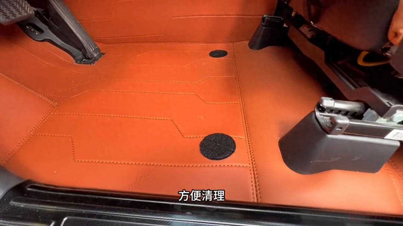 ·第二个优点就是原车所有脚垫的区域都被皮质的软包裹覆盖,方便清理。家里面有小孩吃零食、丢杂物都可以轻松打理干净。