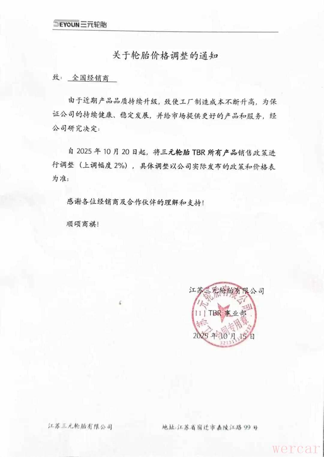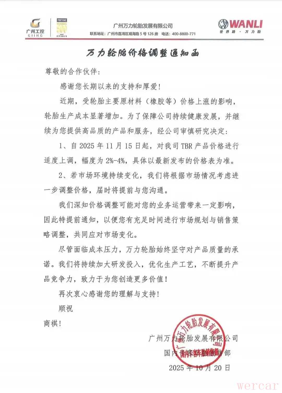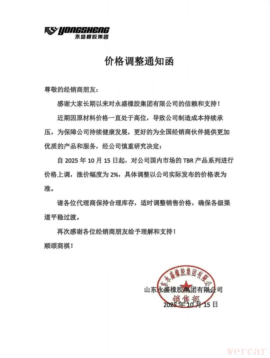 这确实是近期轮胎行业内一个比较普遍的现象。轮胎工厂接二连三发布涨价通知,背后通常有多重原因: