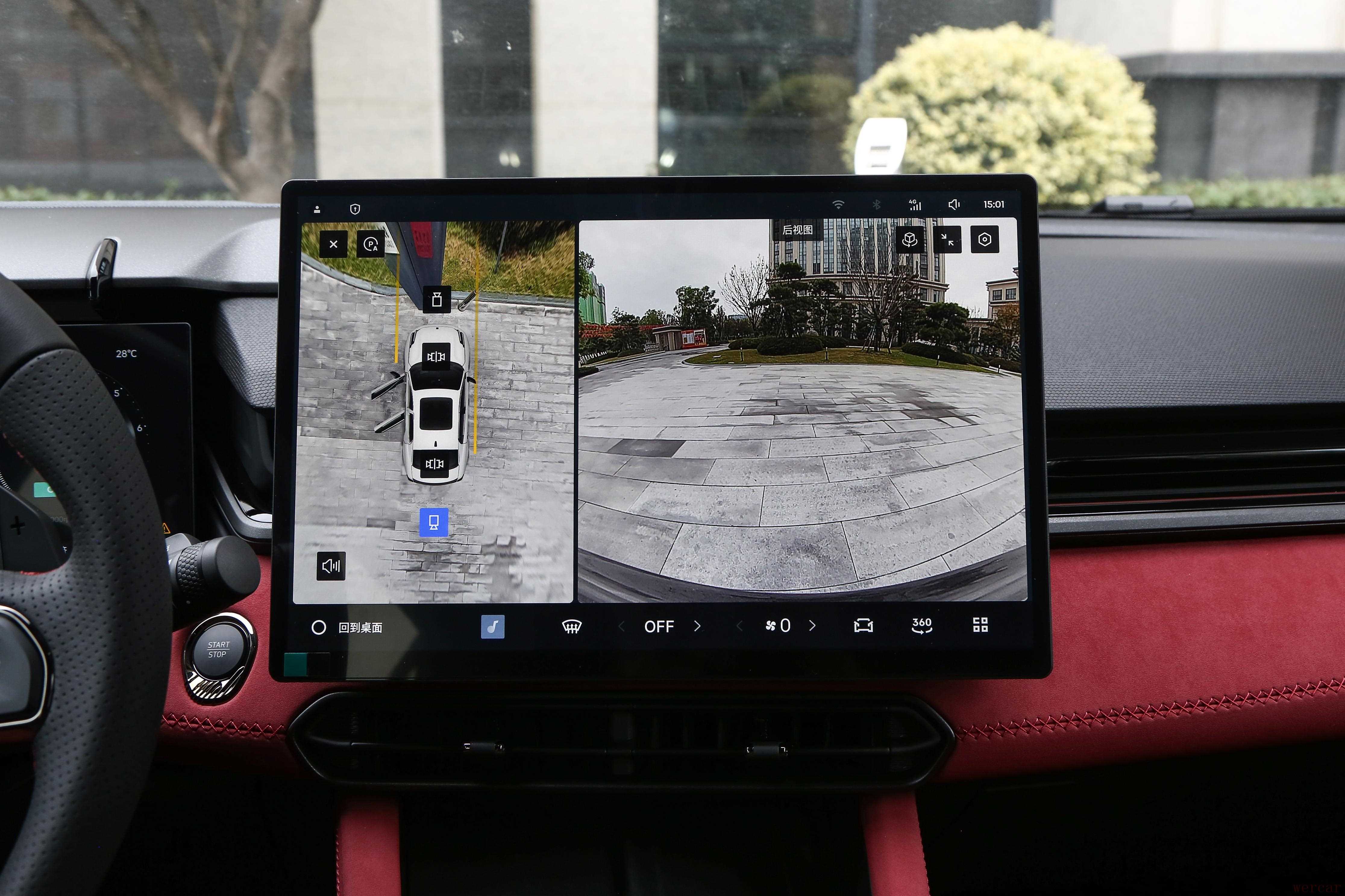 全场景泊车功能对我这种“停车困难户”来说太友好了。不管是侧方停车还是倒车入库,只要按下按键,车子就能自动识别车位并完成停车动作,就算是窄一点的车位也能轻松停进去,不用反复调整。我特意找了一个只有车身宽度加30厘米的窄车位测试,车子竟然一次性就停进去了,而且左右距离很均匀,比我自己停得还好。开启辅助功能时,仪表盘上会亮小蓝灯,能清楚知道辅助功能在工作,心里更有底。